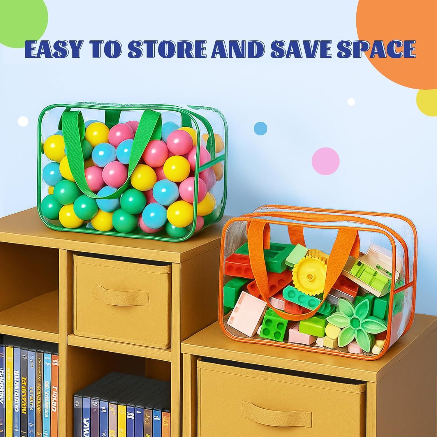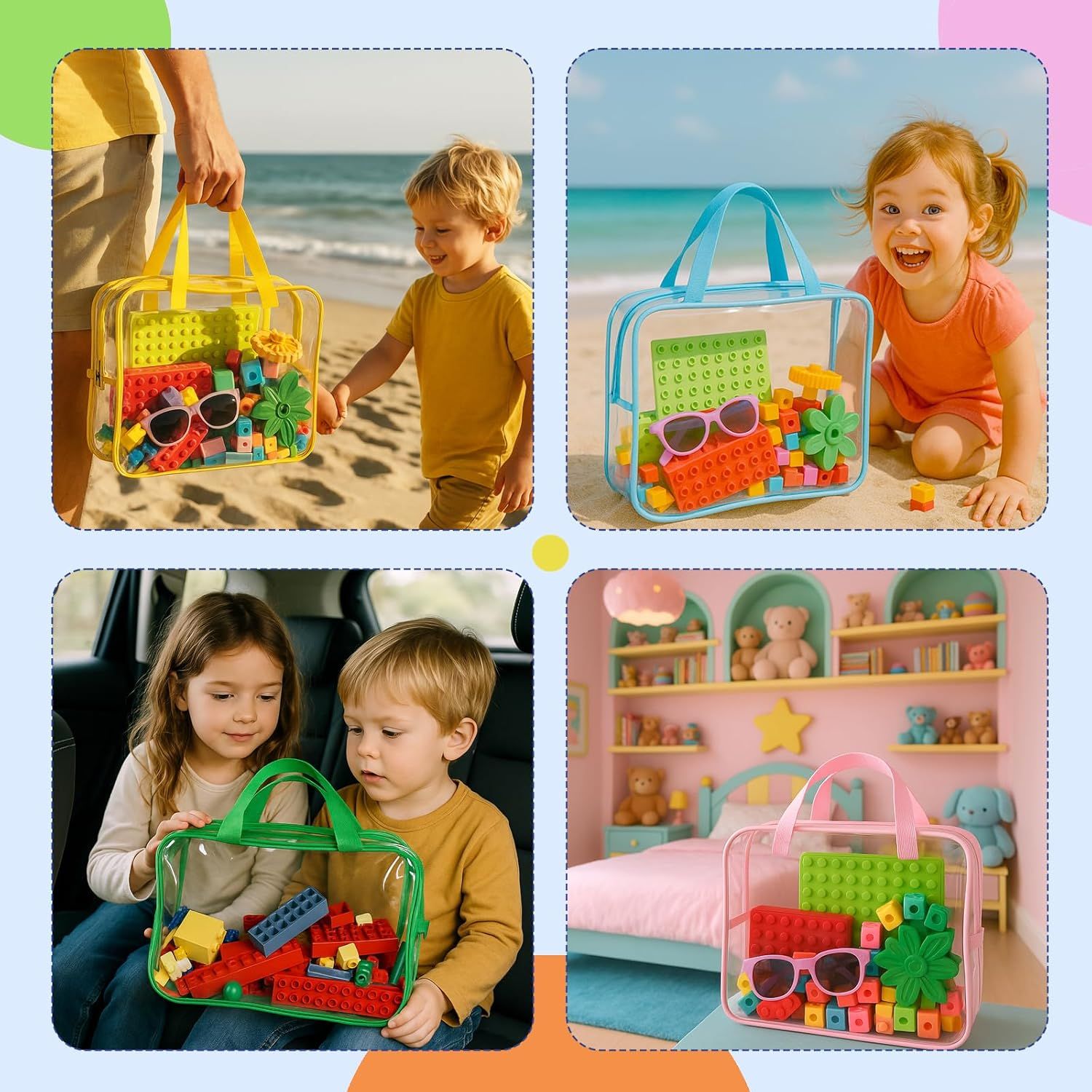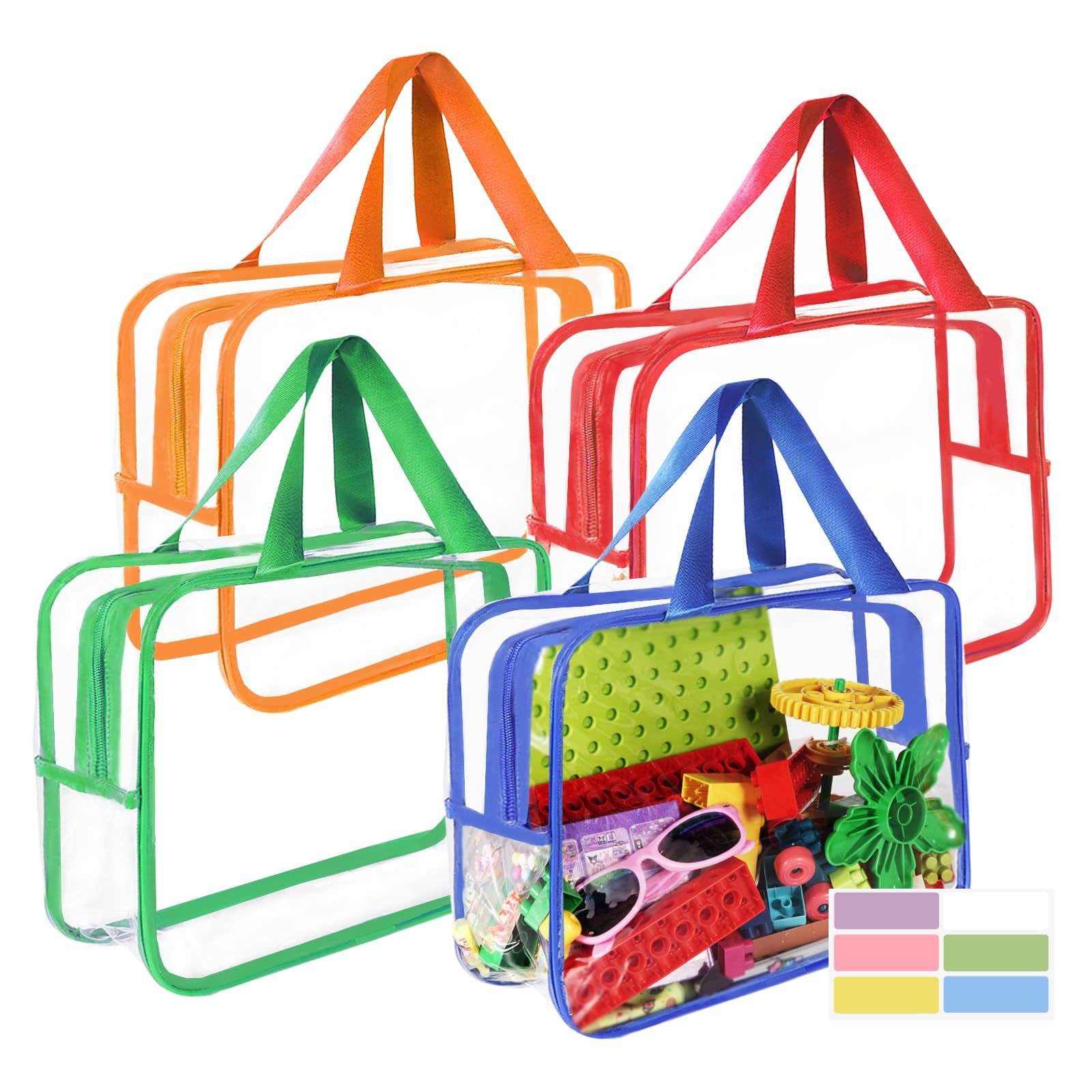 4 Pcs Toy Storage Bags, Clear PVC Toy Organizer with Zipper, Waterproof Travel Bags with Labels for Building Blocks, Puzzle, Kids Books (multicolor2)