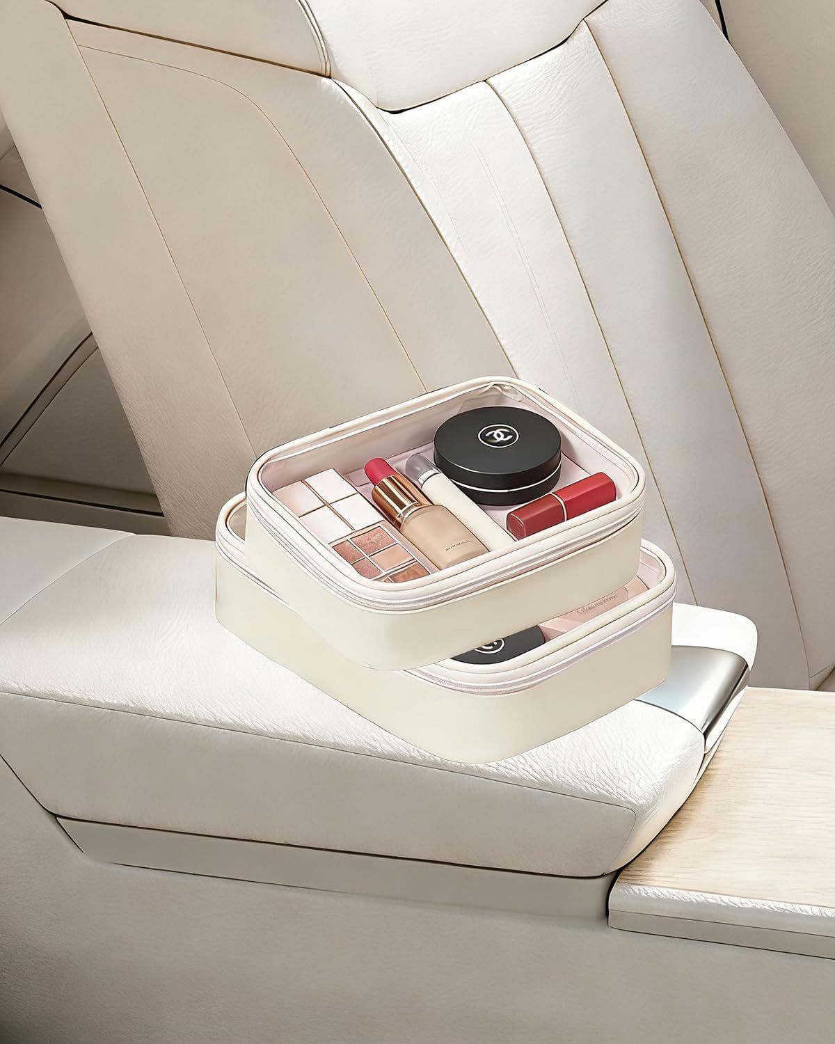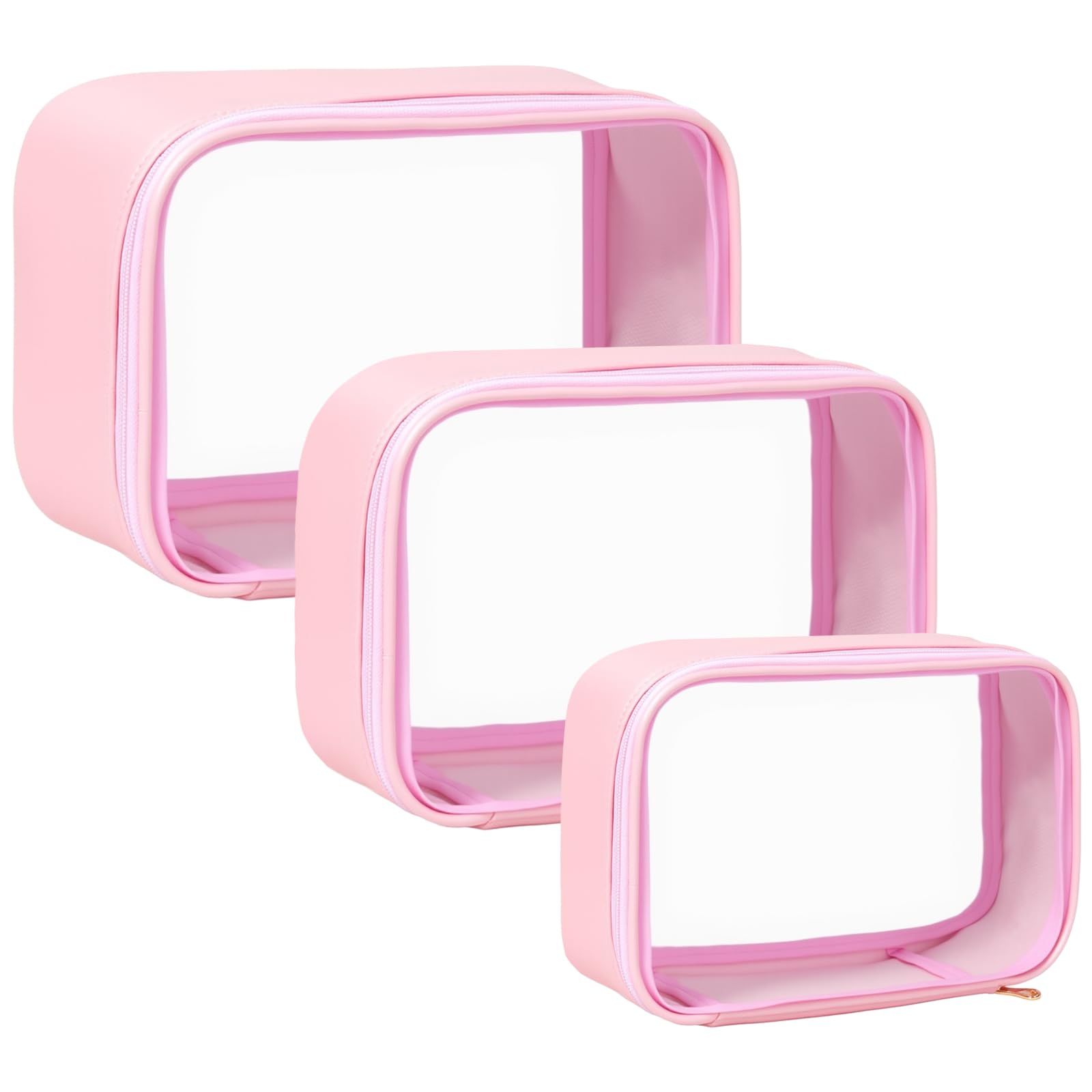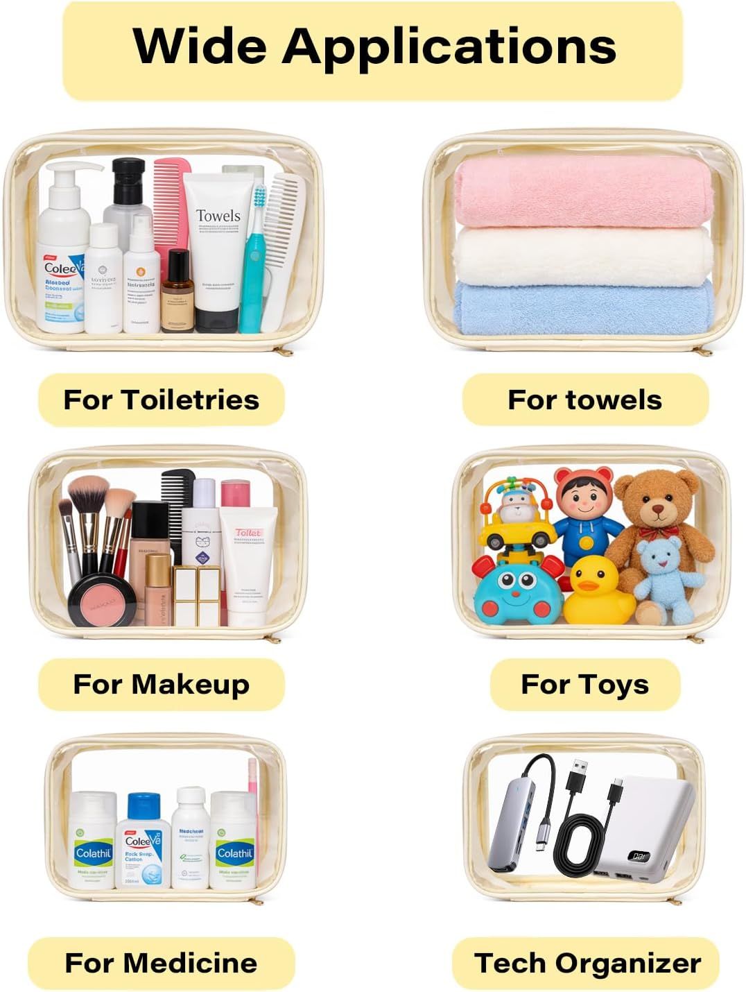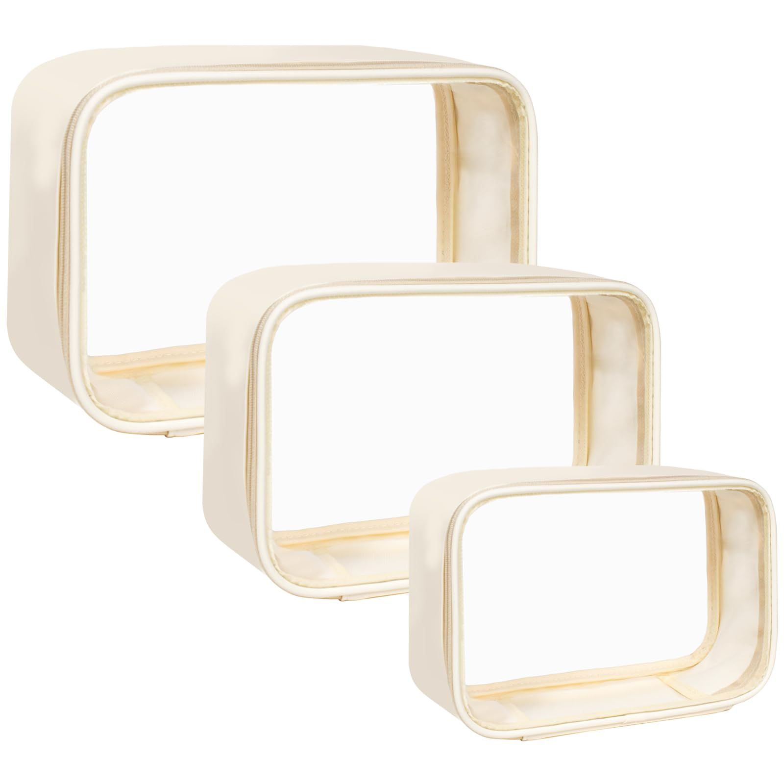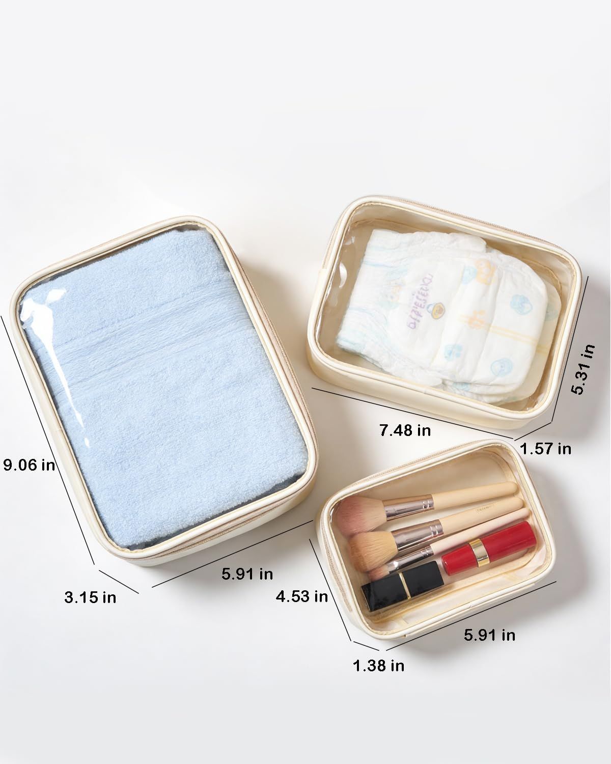 Travel Clear Makeup Bag Set for Women, 3 Pack Travel Size Toiletry Bag with Zipper Small Makeup Pouch for Purse Waterproof Portable Cosmetic Case Compact Car Organizer Storage Bag (Beige Set)