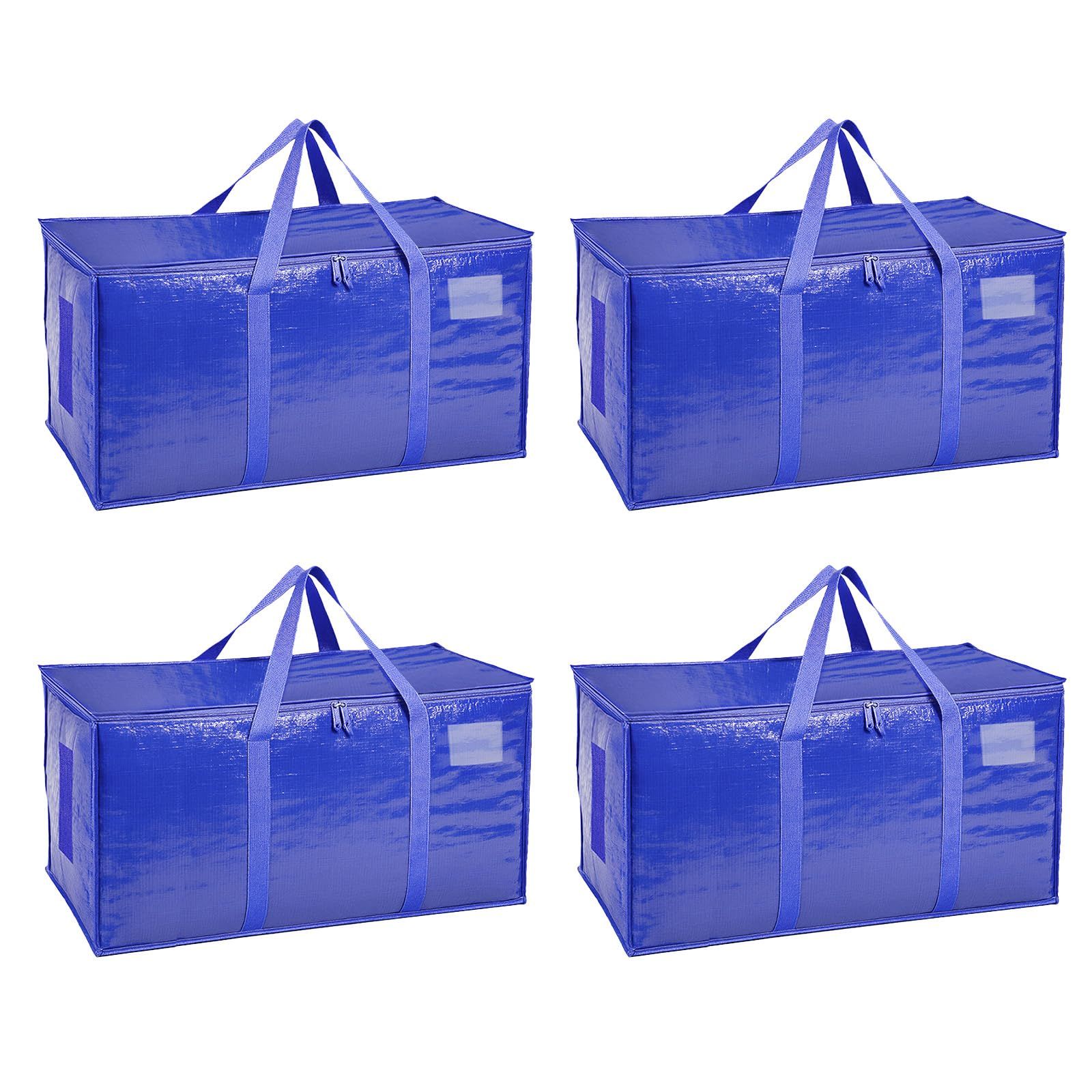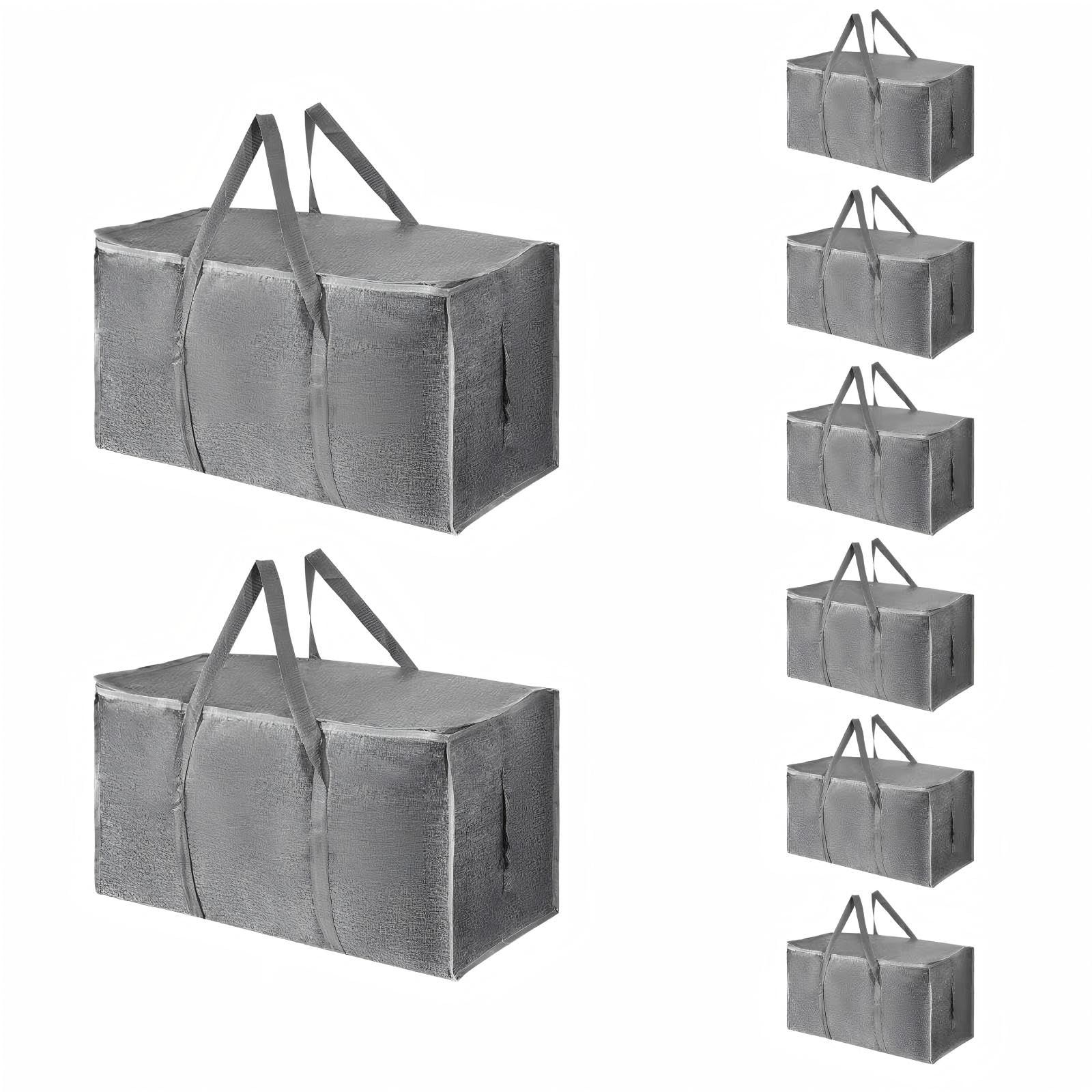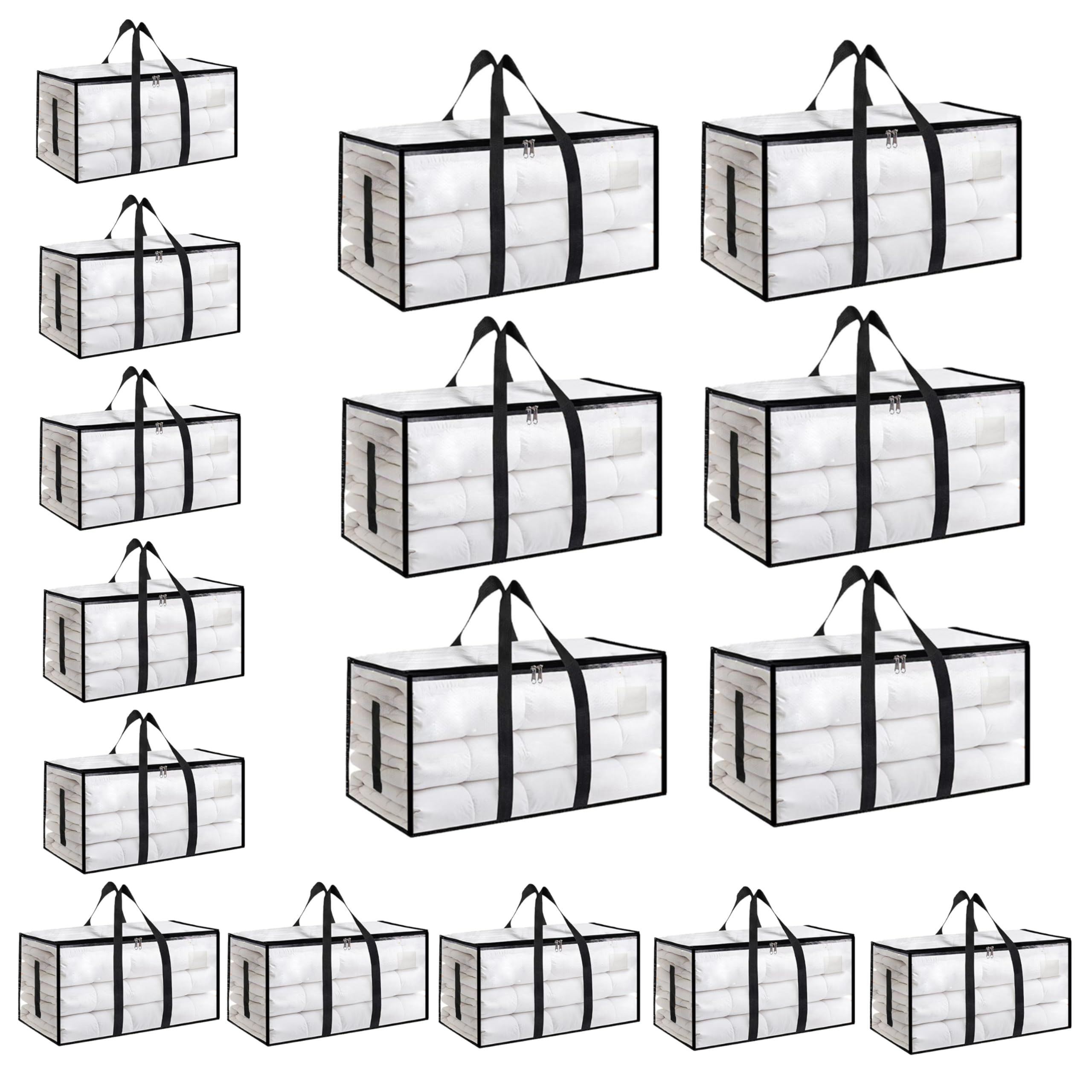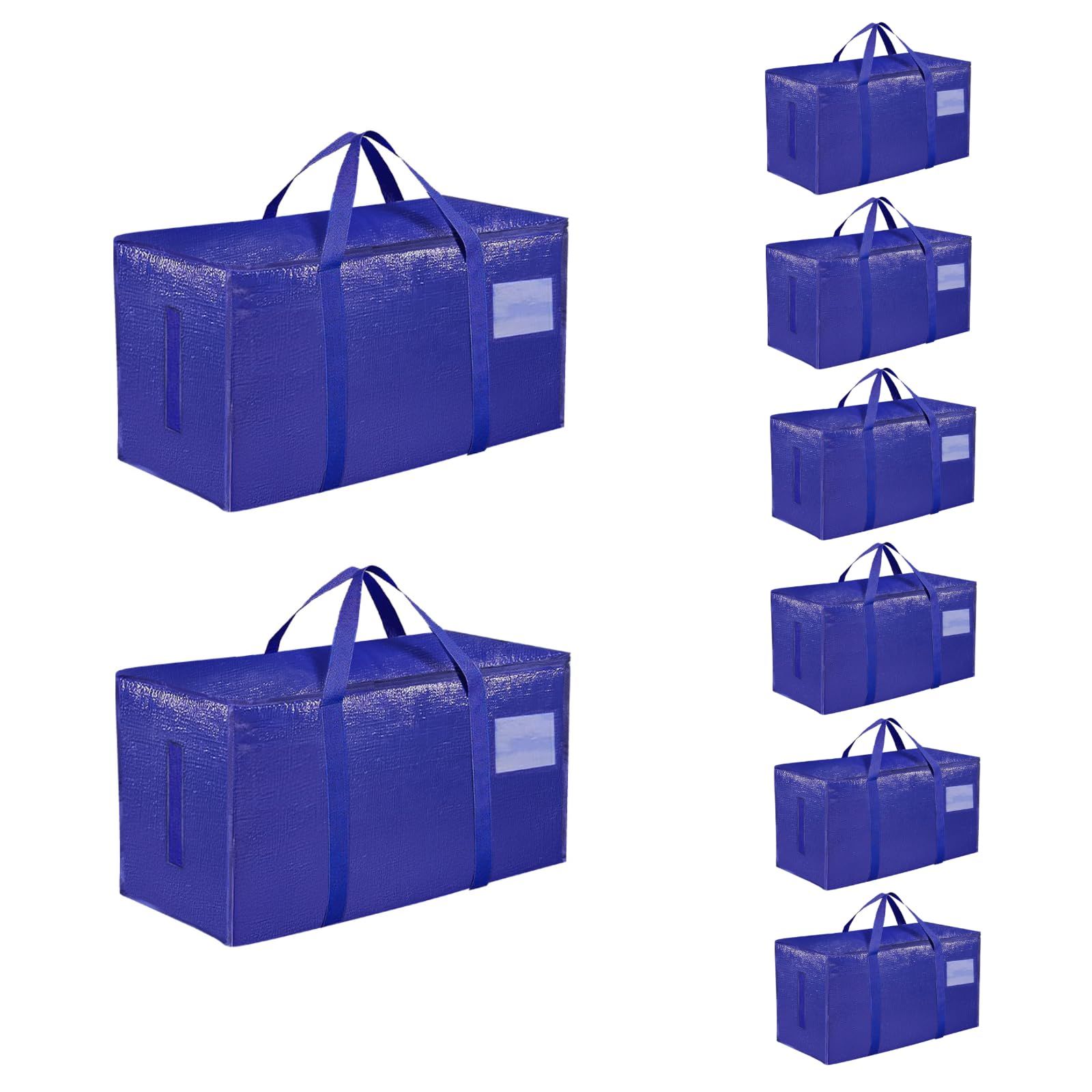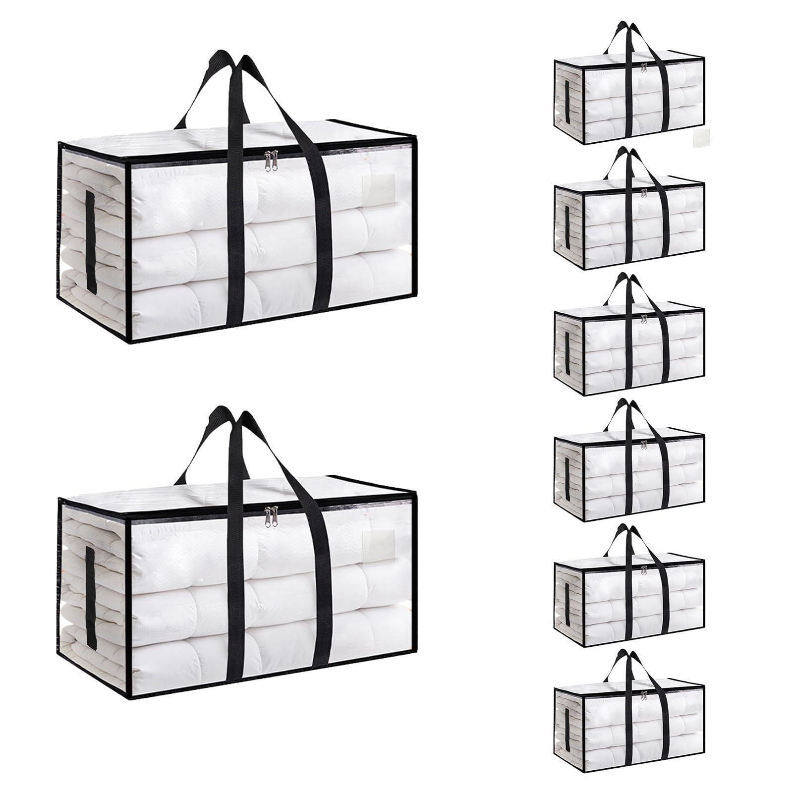 8 Pack-Extra Large Heavy Duty Moving Bags - Waterproof Storage Totes with Handles & Zippers, Foldable for College Dorm, Storage (Clear)