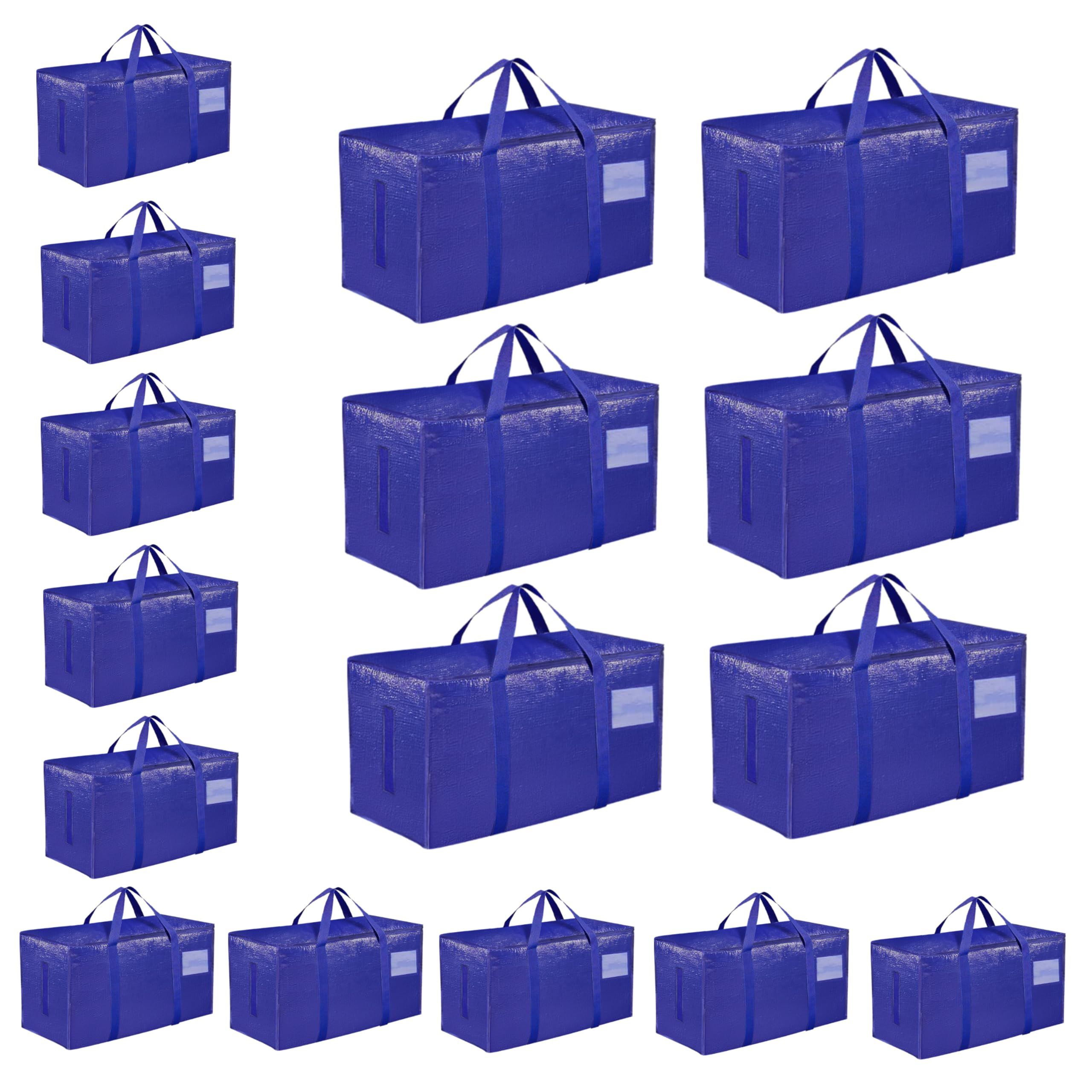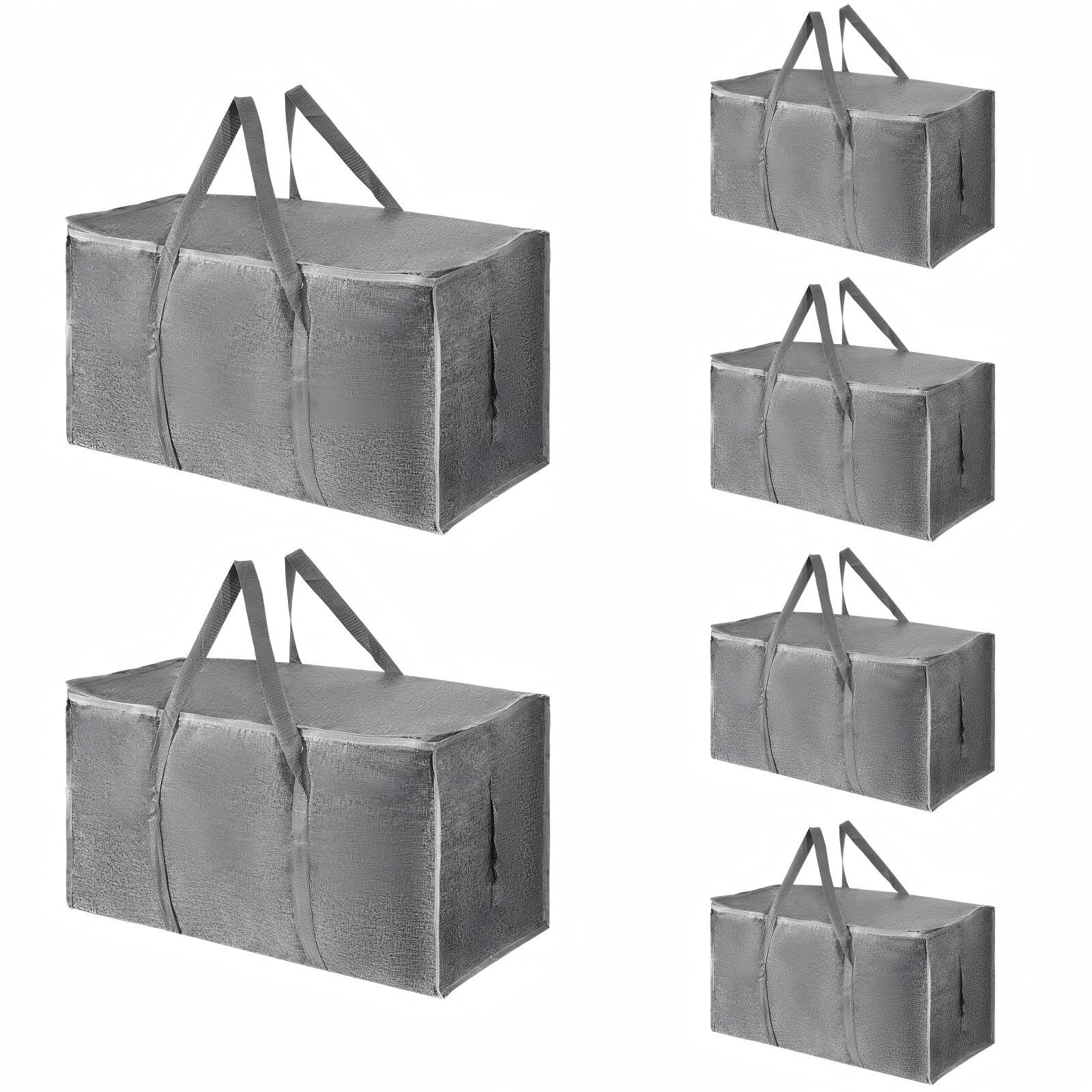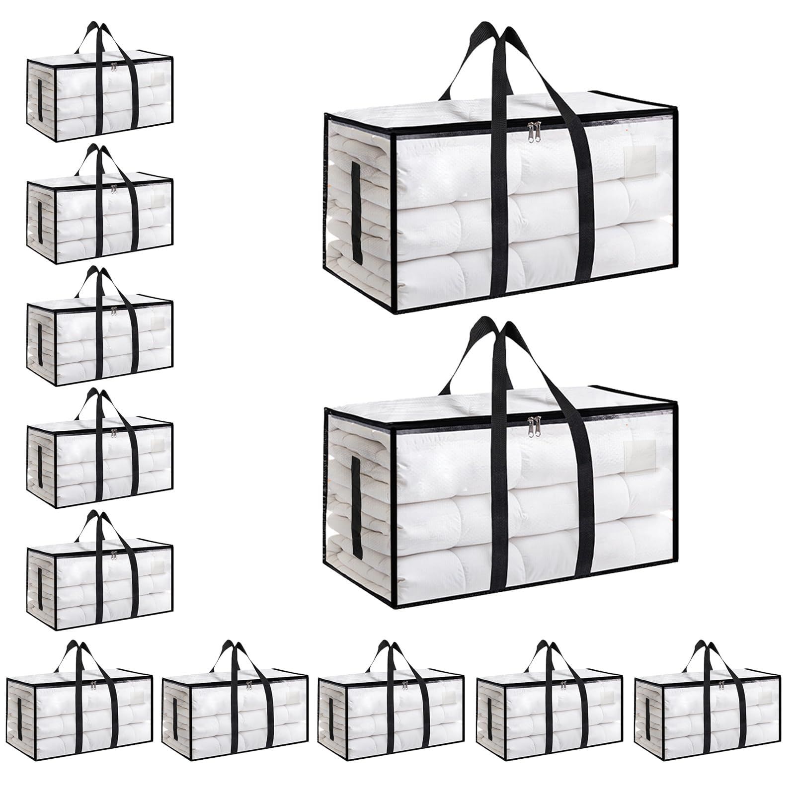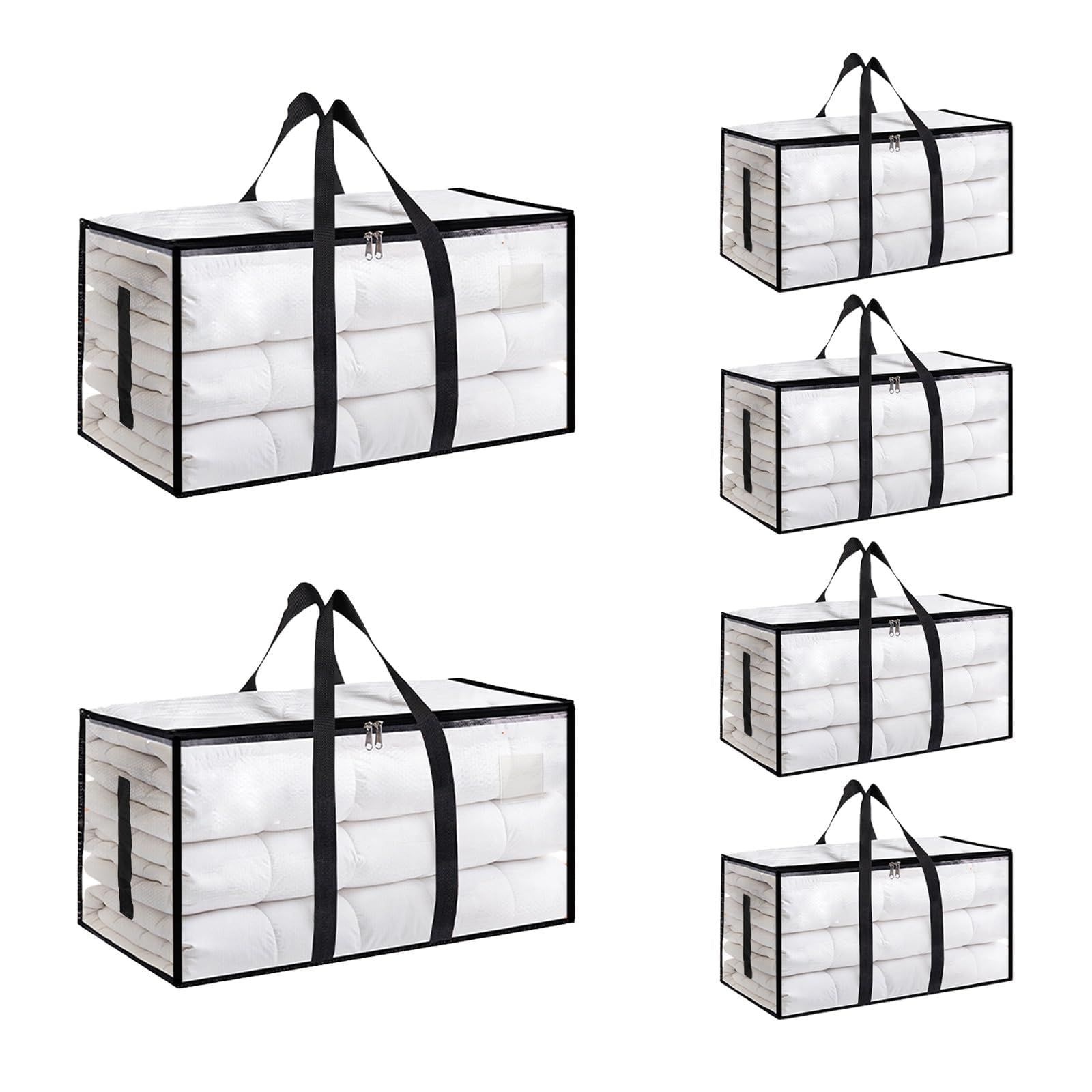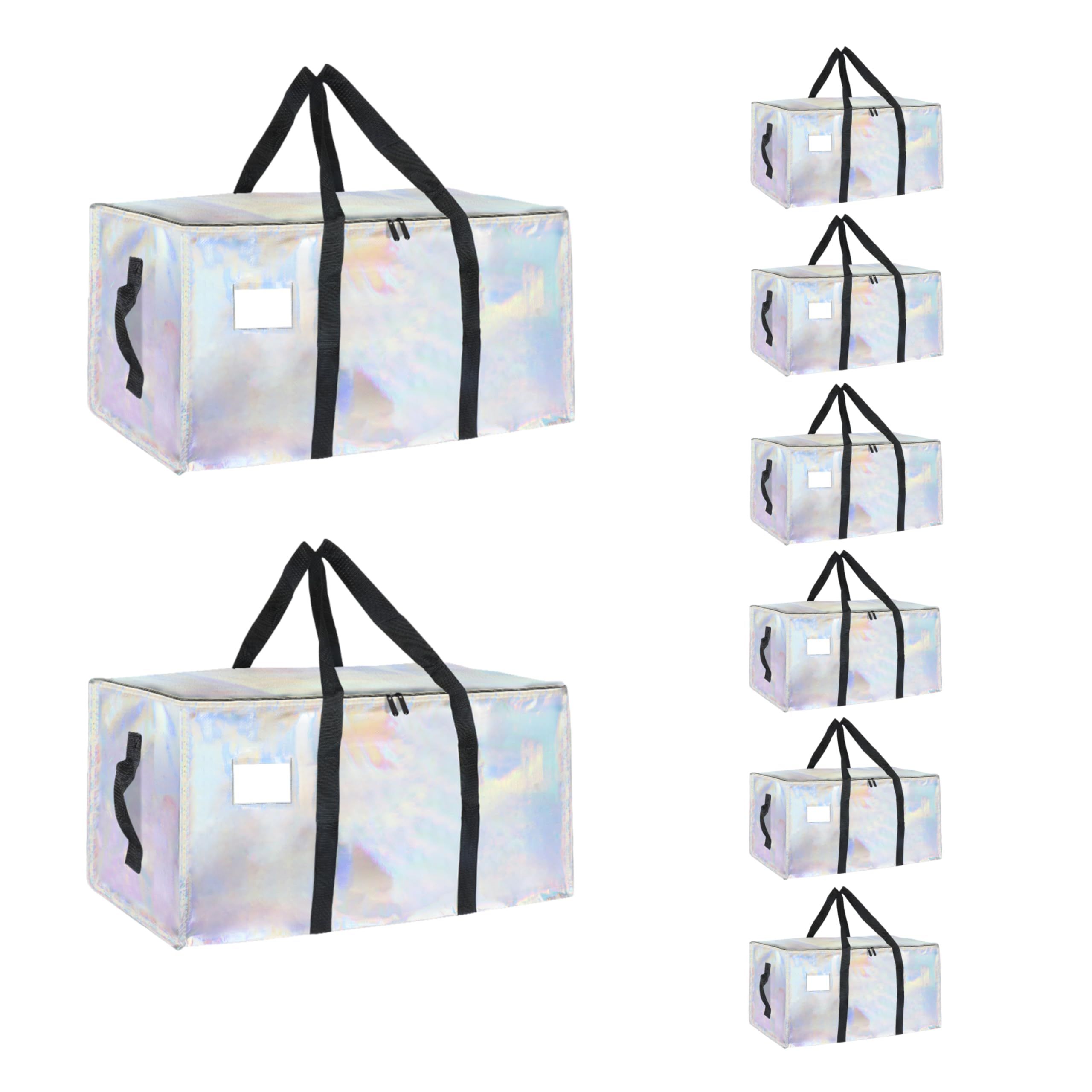 8 Pack-Extra Large Heavy Duty Moving Bags - Waterproof Storage Totes with Handles & Zippers, Foldable for College Dorm, Storage (Clear)