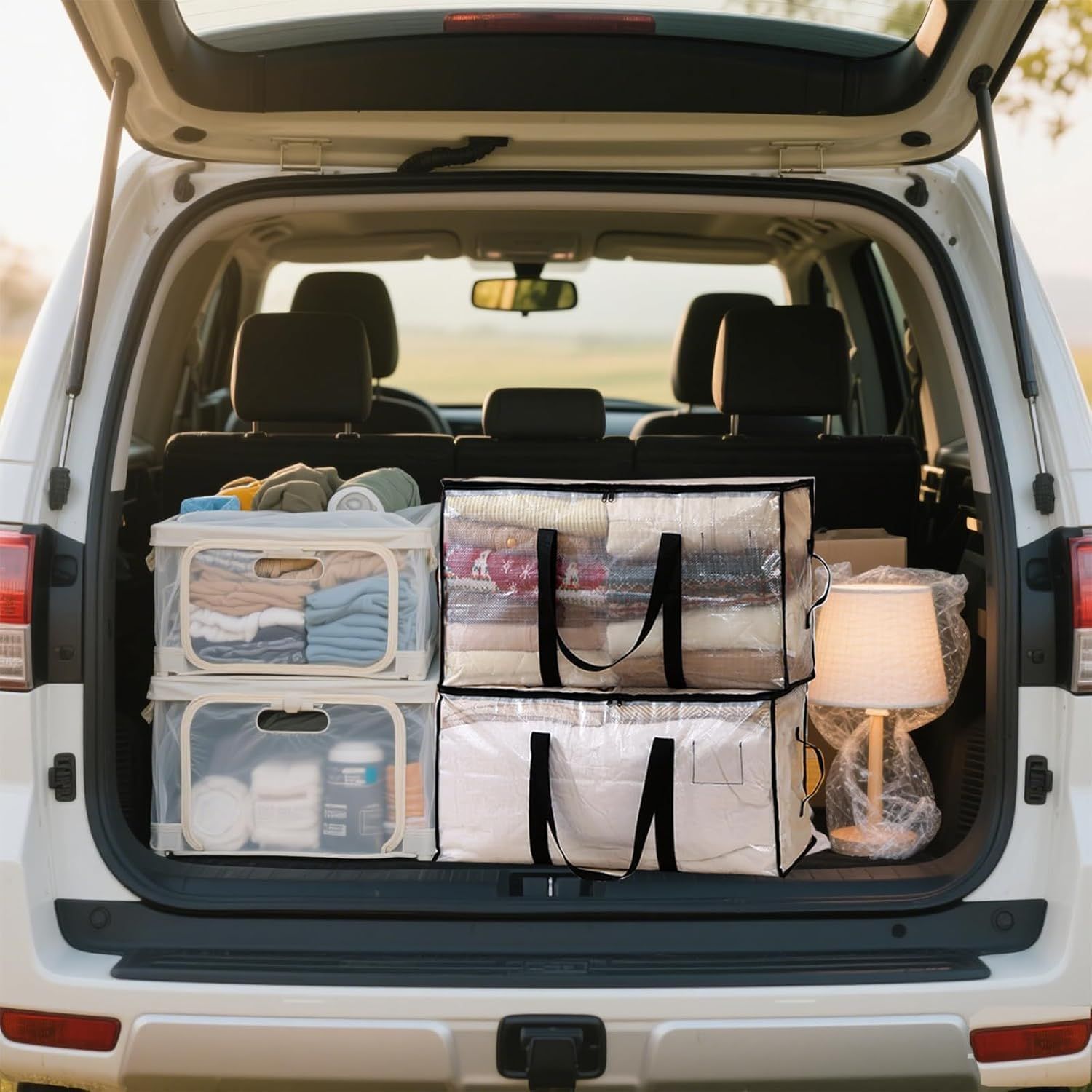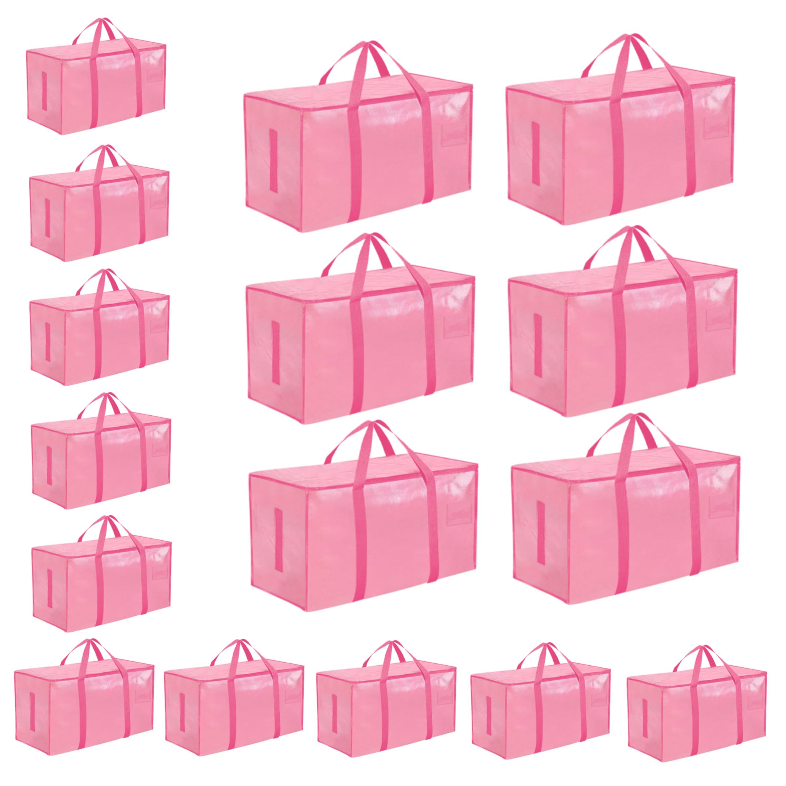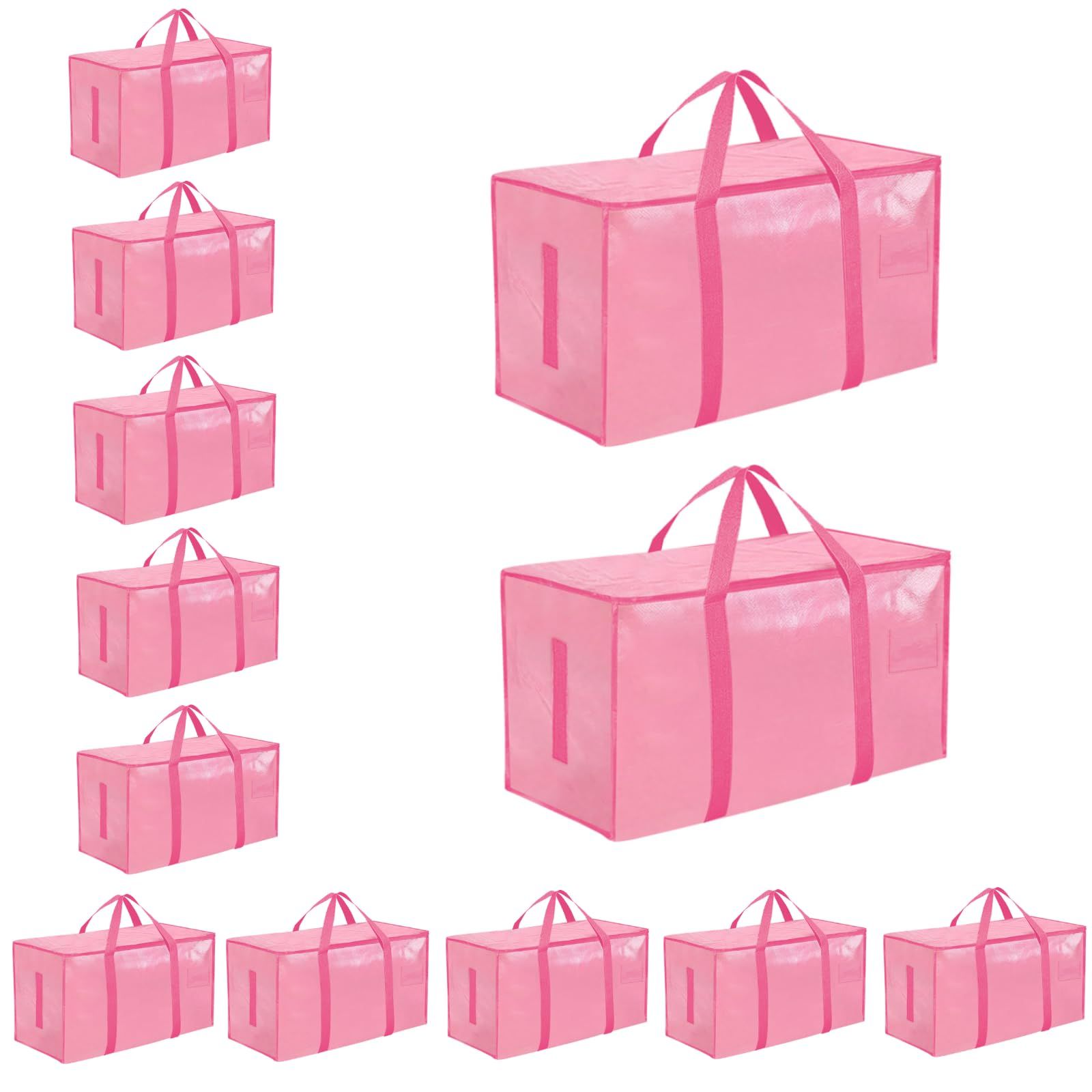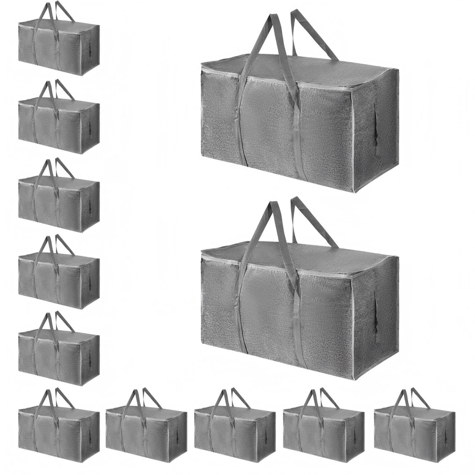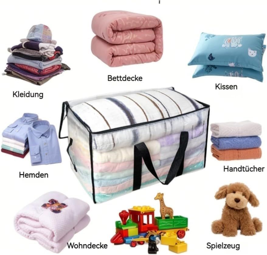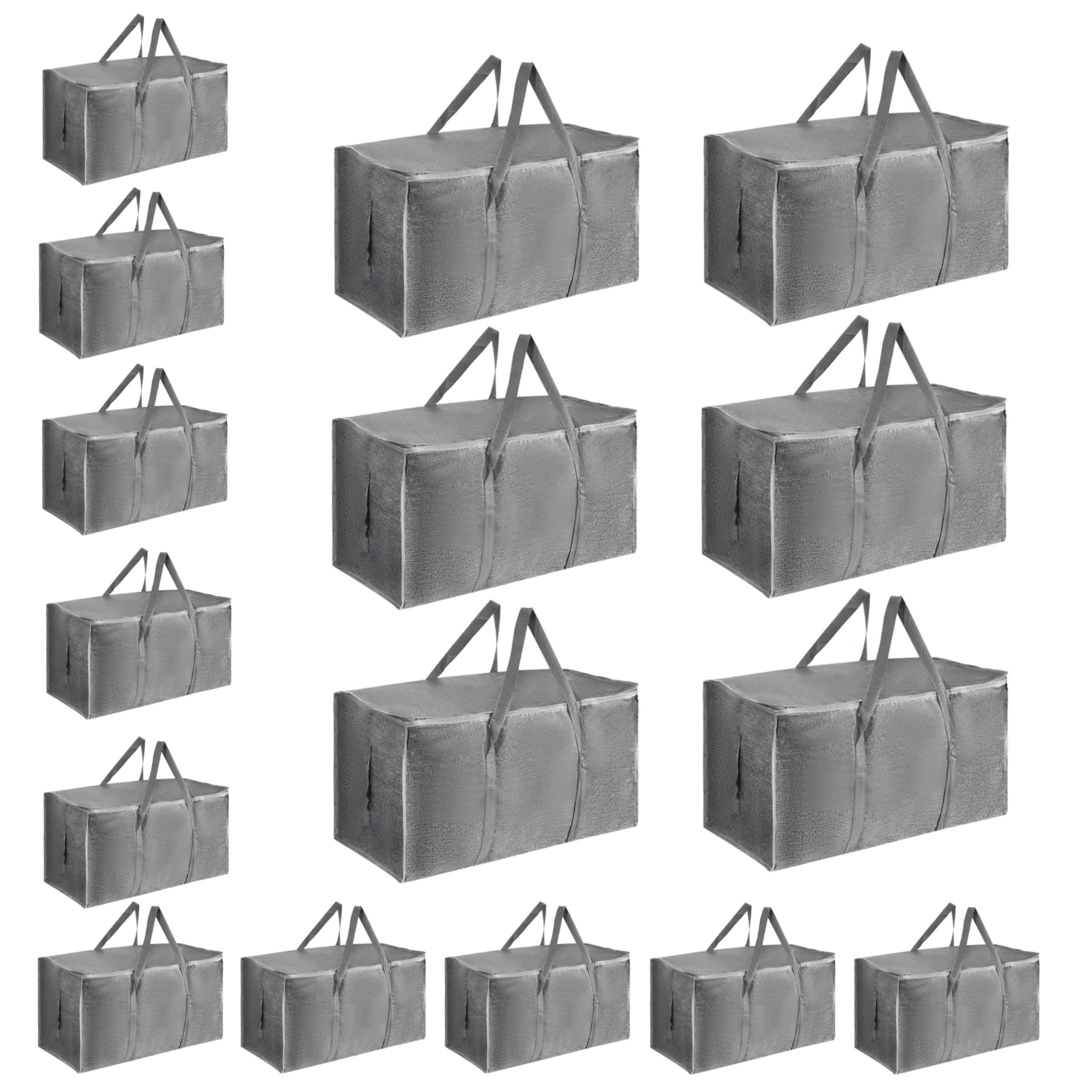 8 Pack-Extra Large Heavy Duty Moving Bags - Waterproof Storage Totes with Handles & Zippers, Foldable for College Dorm, Storage (Clear)