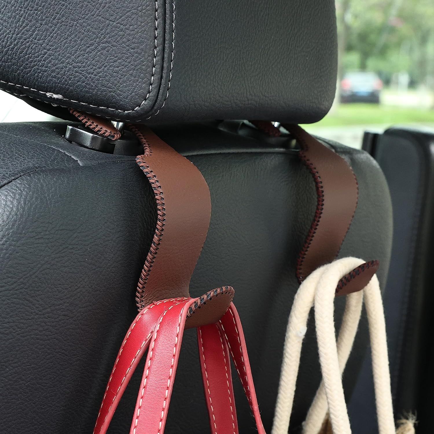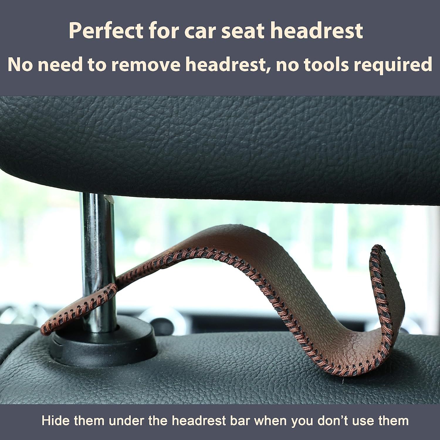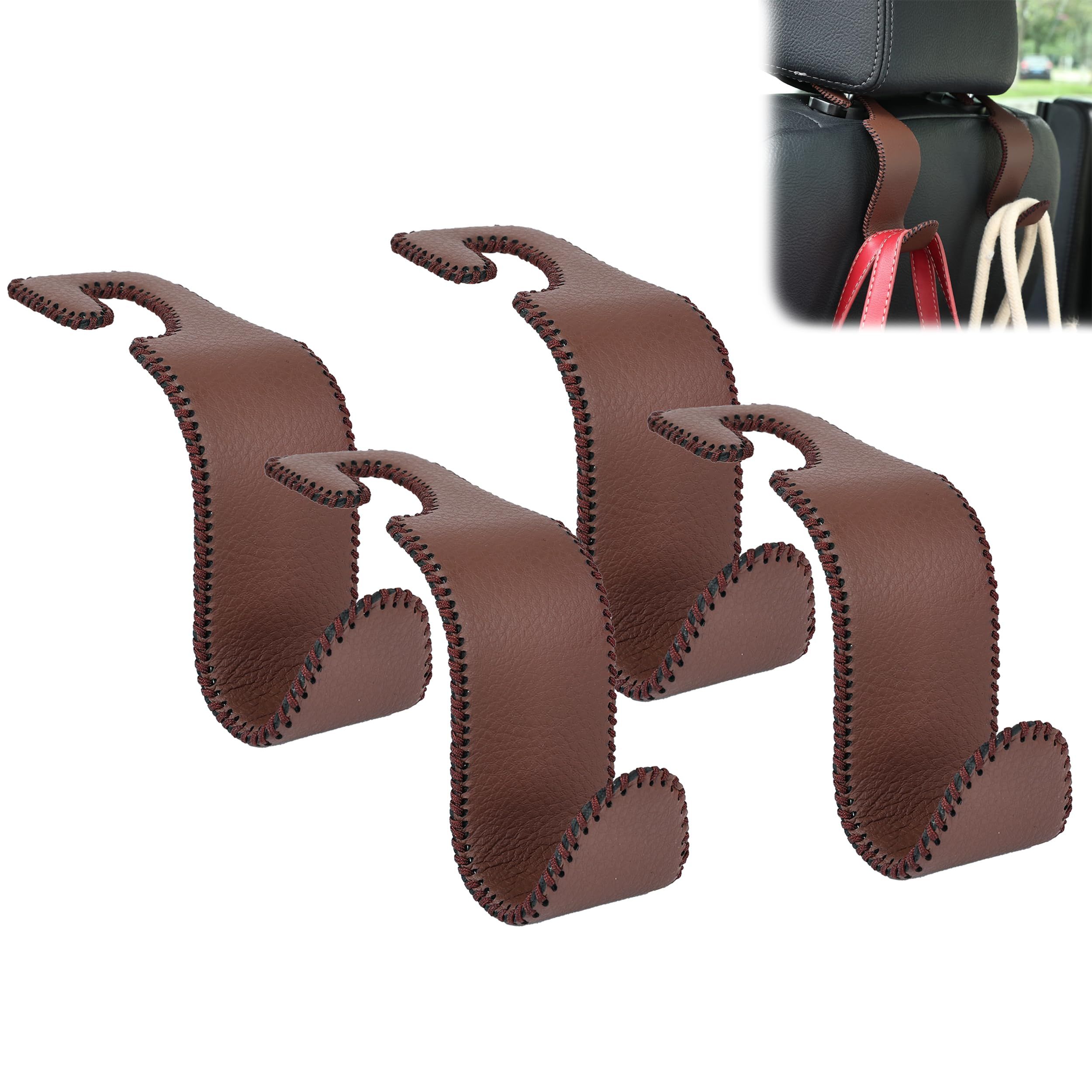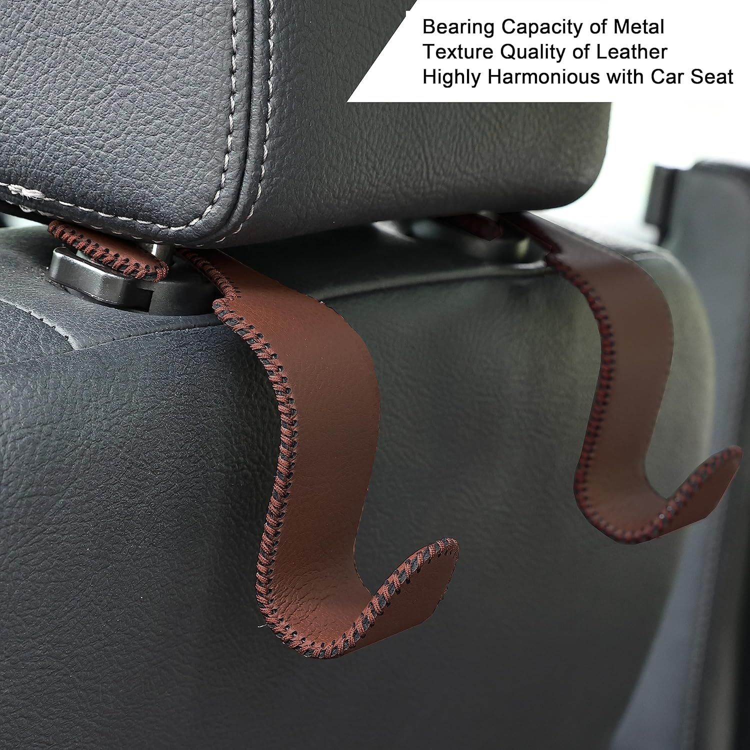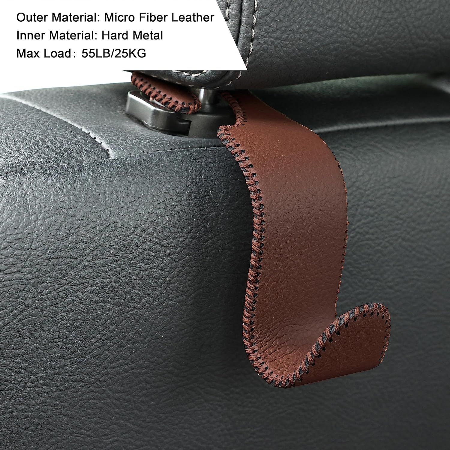 Amooca Car Seat Headrest Hook Universal Vehicle Storage Hanger Leather with Metal Car Seat Back Organizer for Handbag Purse Coat Brown 2 Pack