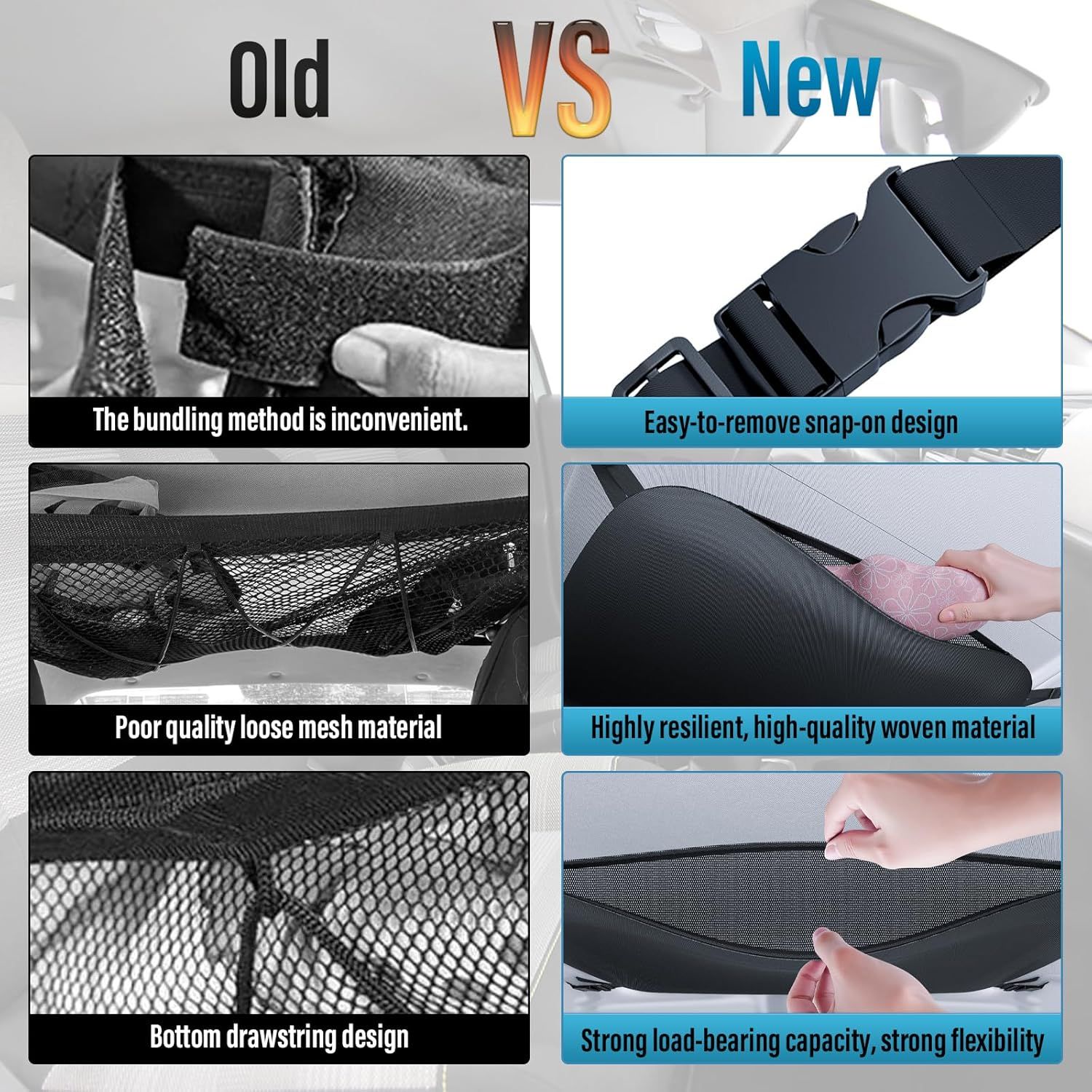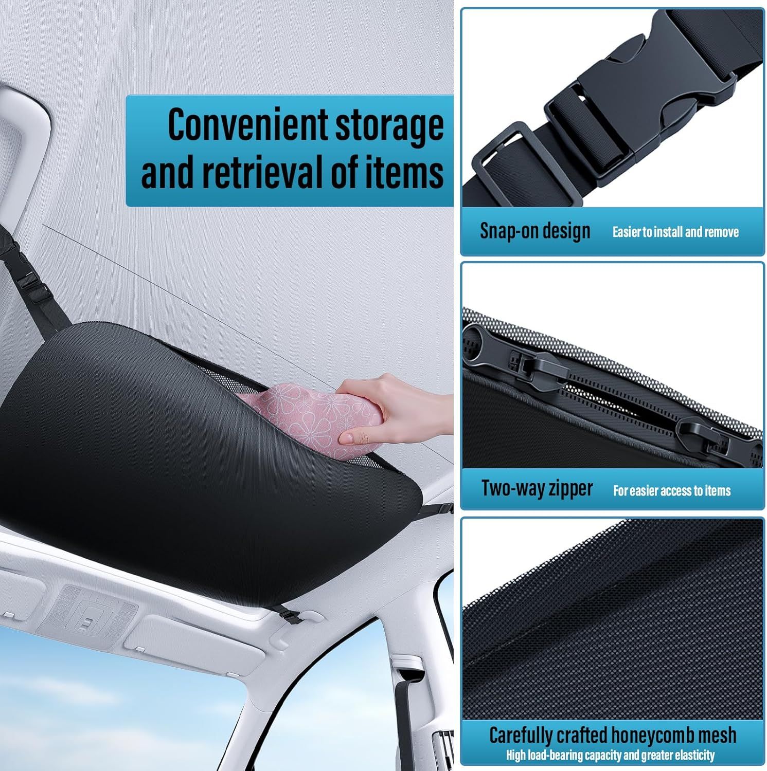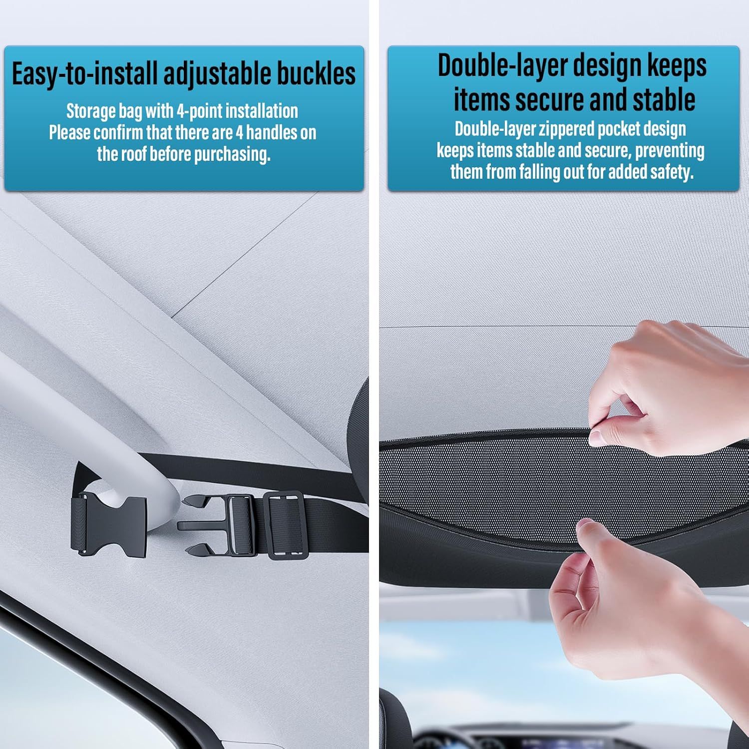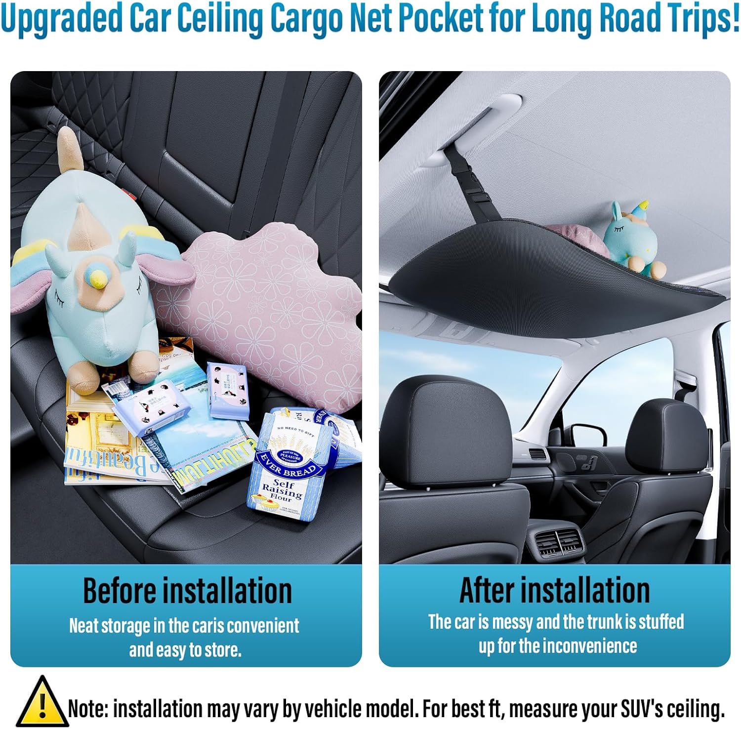 Upgraded Car Ceiling Cargo Net, Easy Installation.