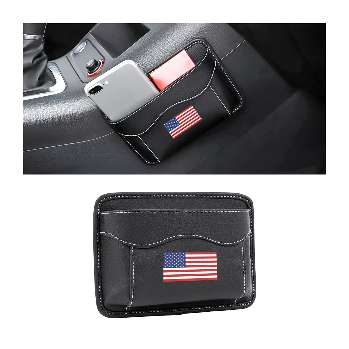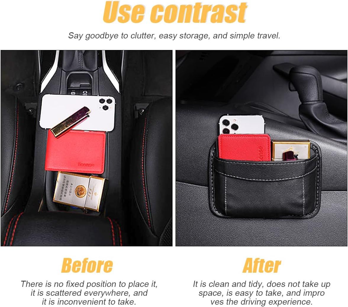 Car Seat Side Pocket Organizer, PU Leather Mini Storage Bag for Auto Door Window Console, Pen Phone Holder Tray Pouch Vehicle Seat Gap Filler for Organize Document, Registration, Notepad (Black)