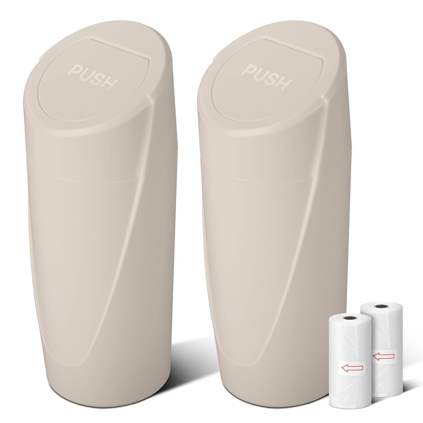 Car Trash Can Bin with Lid - 2 Packs Car Garbage Can Cup Holder - Beige Mini ...