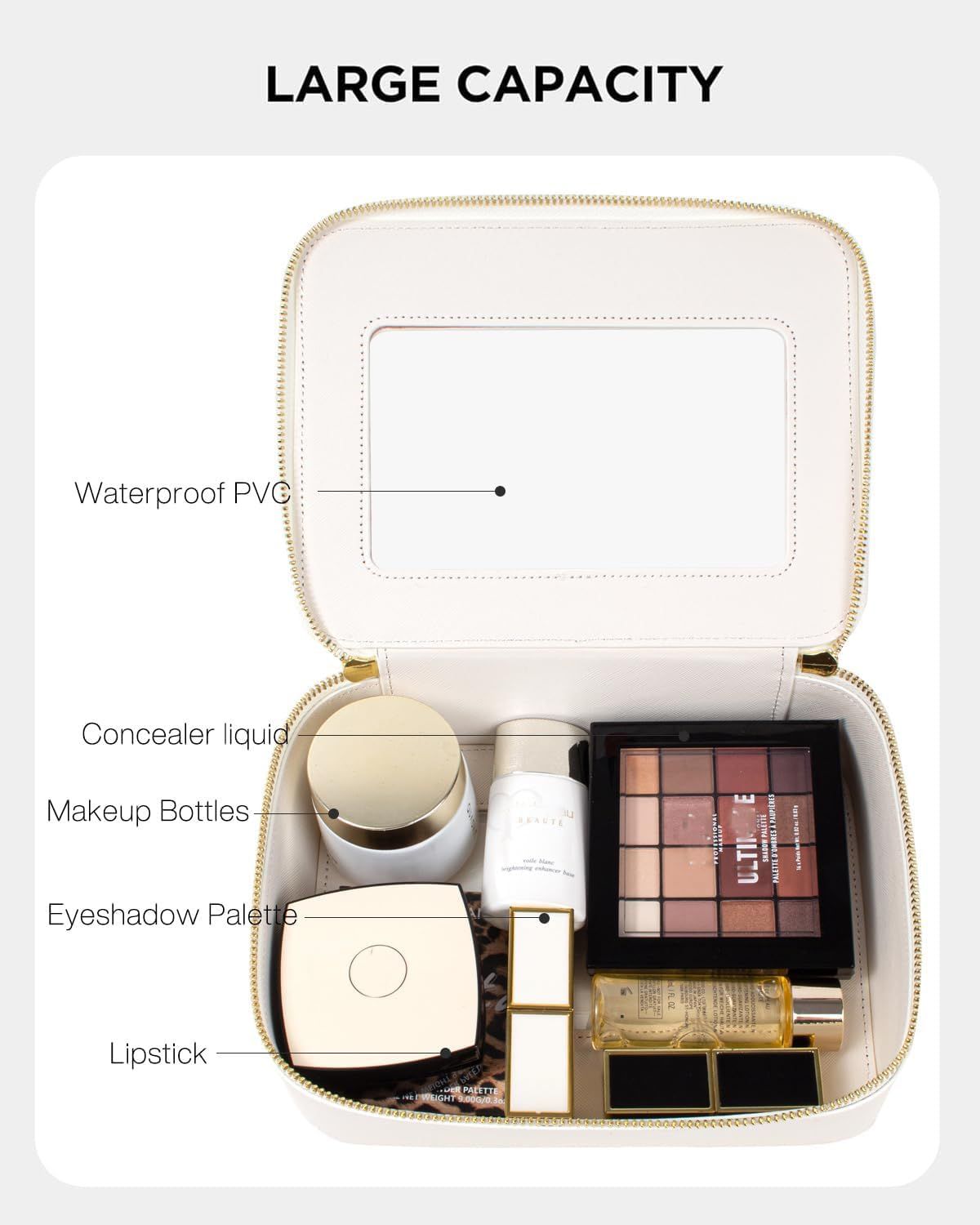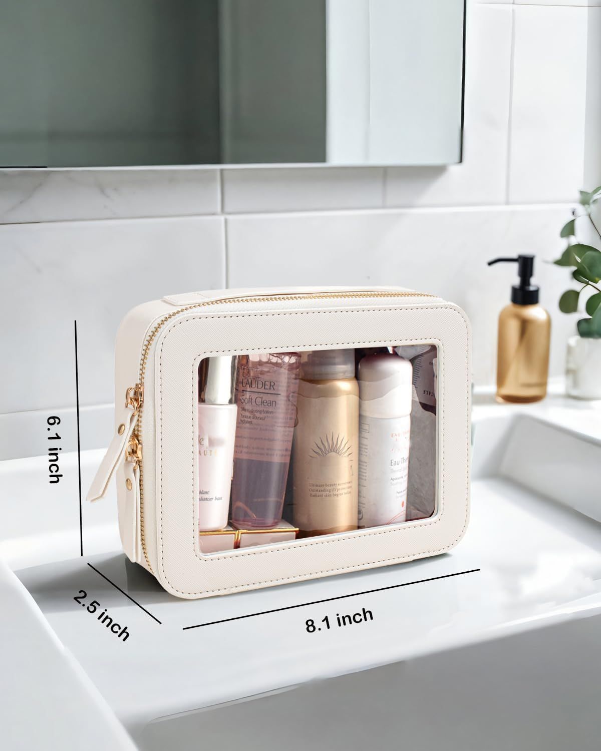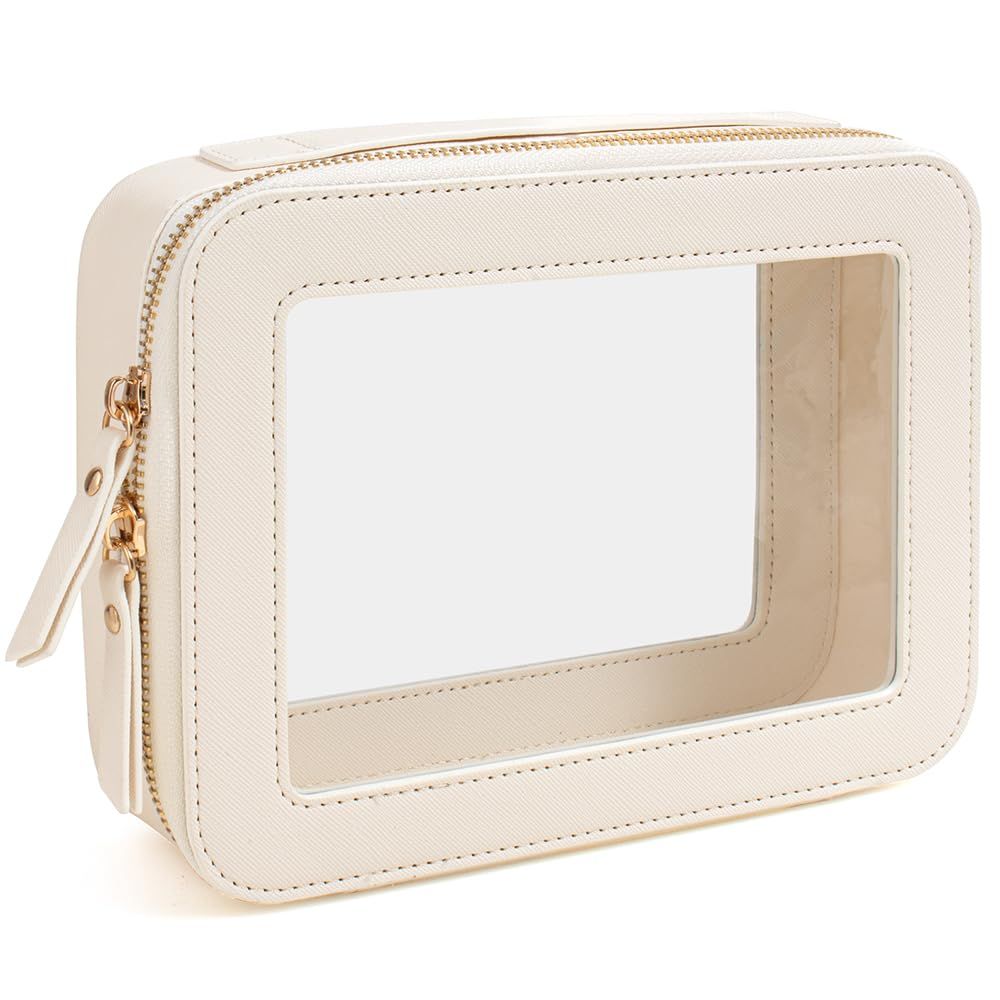 Clear Makeup Bag, Travel Cosmetic Organizer Case Waterproof Skincare Toiletry Bag with Zipper Portable Make Up Pouch Compact Car Organizer Bag for Essentials (Large White)