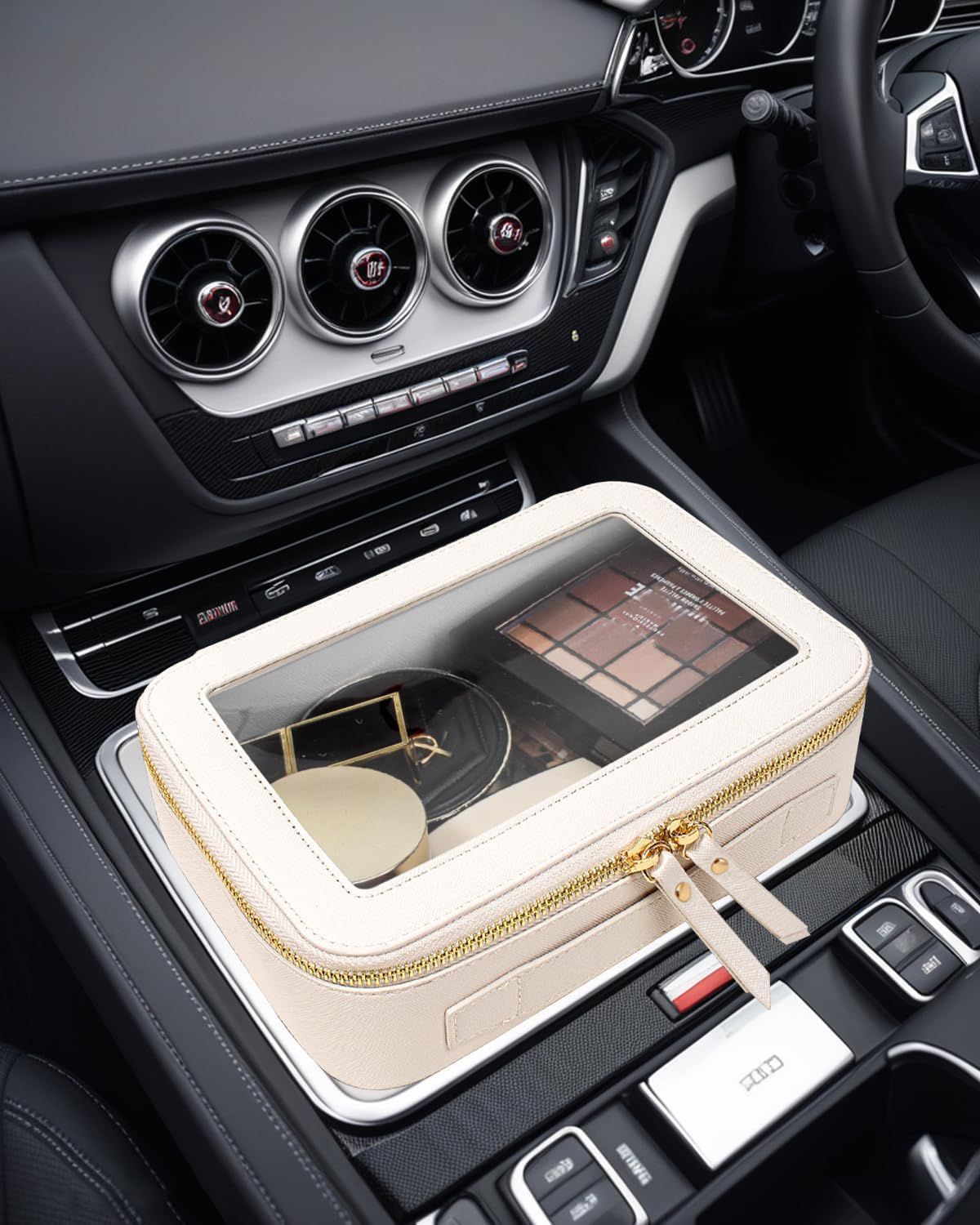 Our large travel toiletry bag is roomy to store your daily make-up, cream, lipstick, perfume and other beauty things organized and protected. And these clear makeup bag can be a good car accessory fits in the center console or other parts of your car.