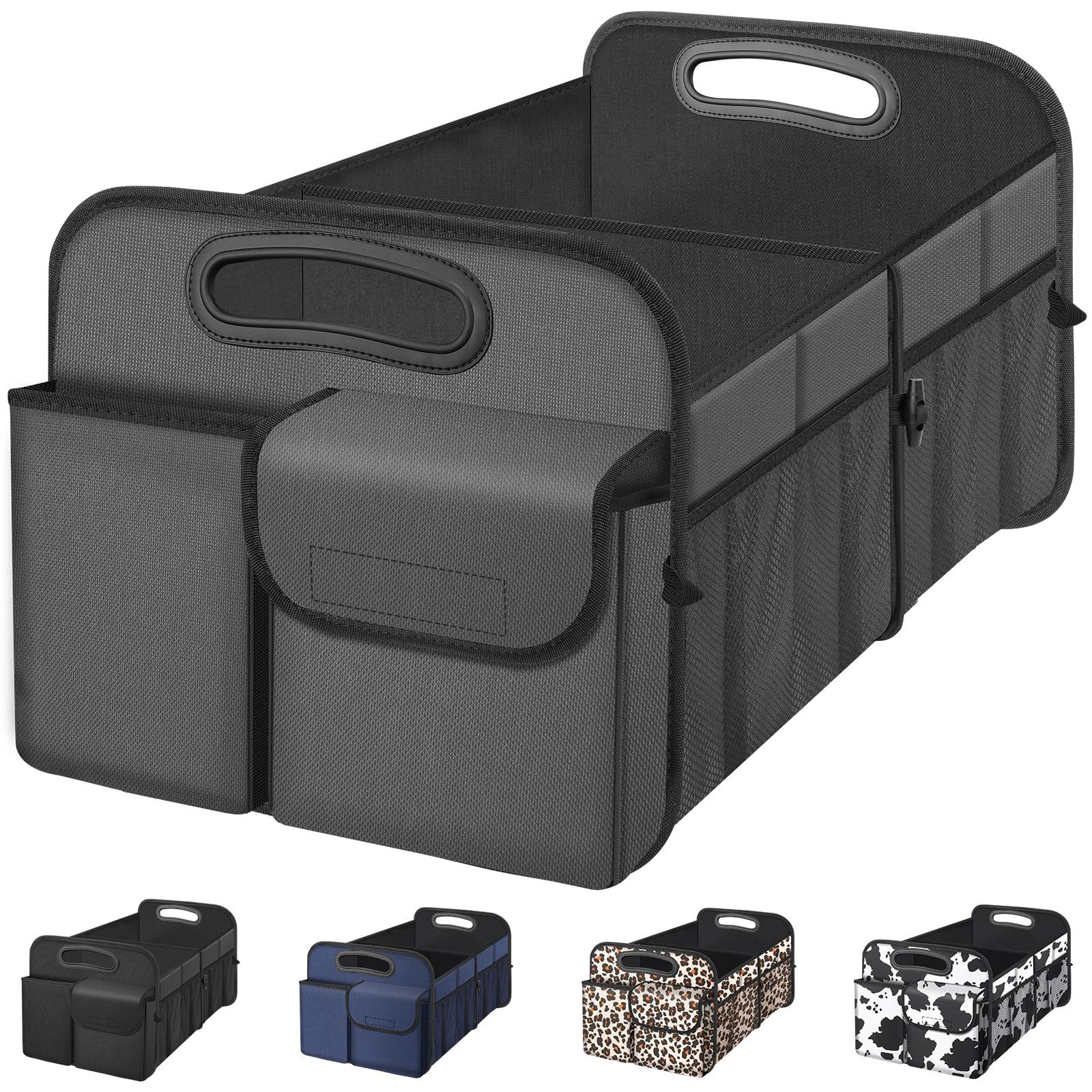 Femuar Car Trunk Organizer, Trunk Storage Organizer with 72L Large Capacity Waterproof Collapsible and 11 Pockets, Trunk Organizer for Suv/Jeep/Sedan, Large Size, Black