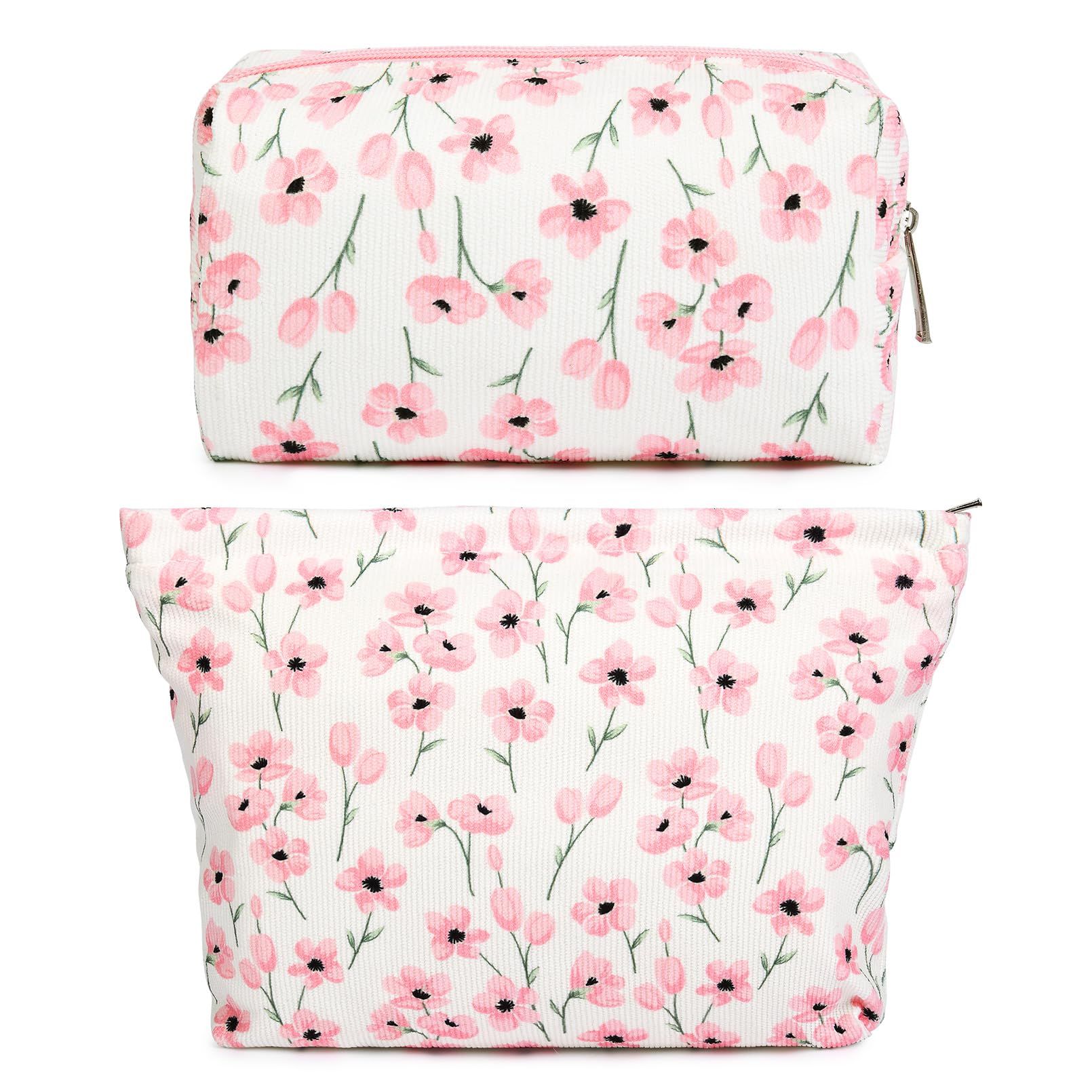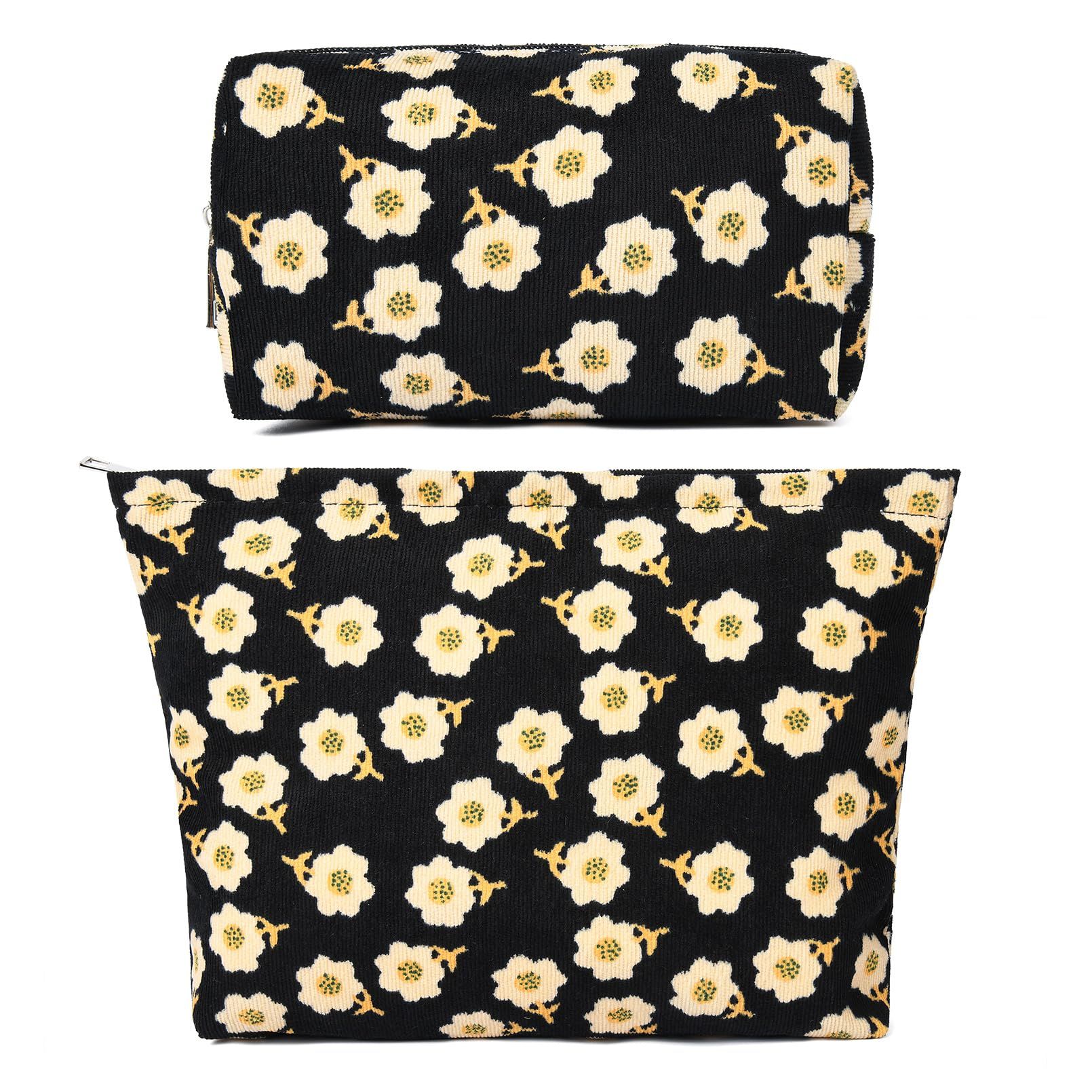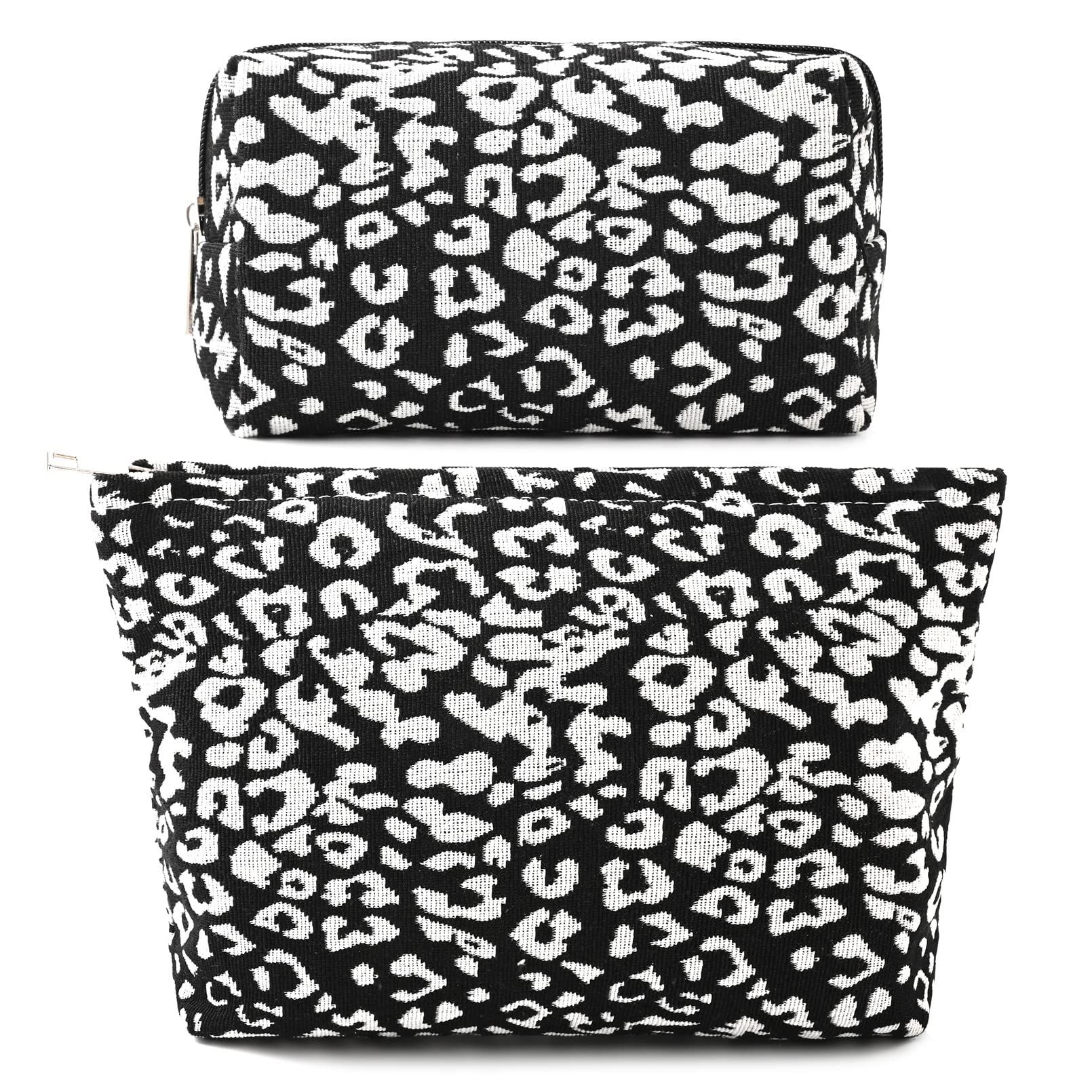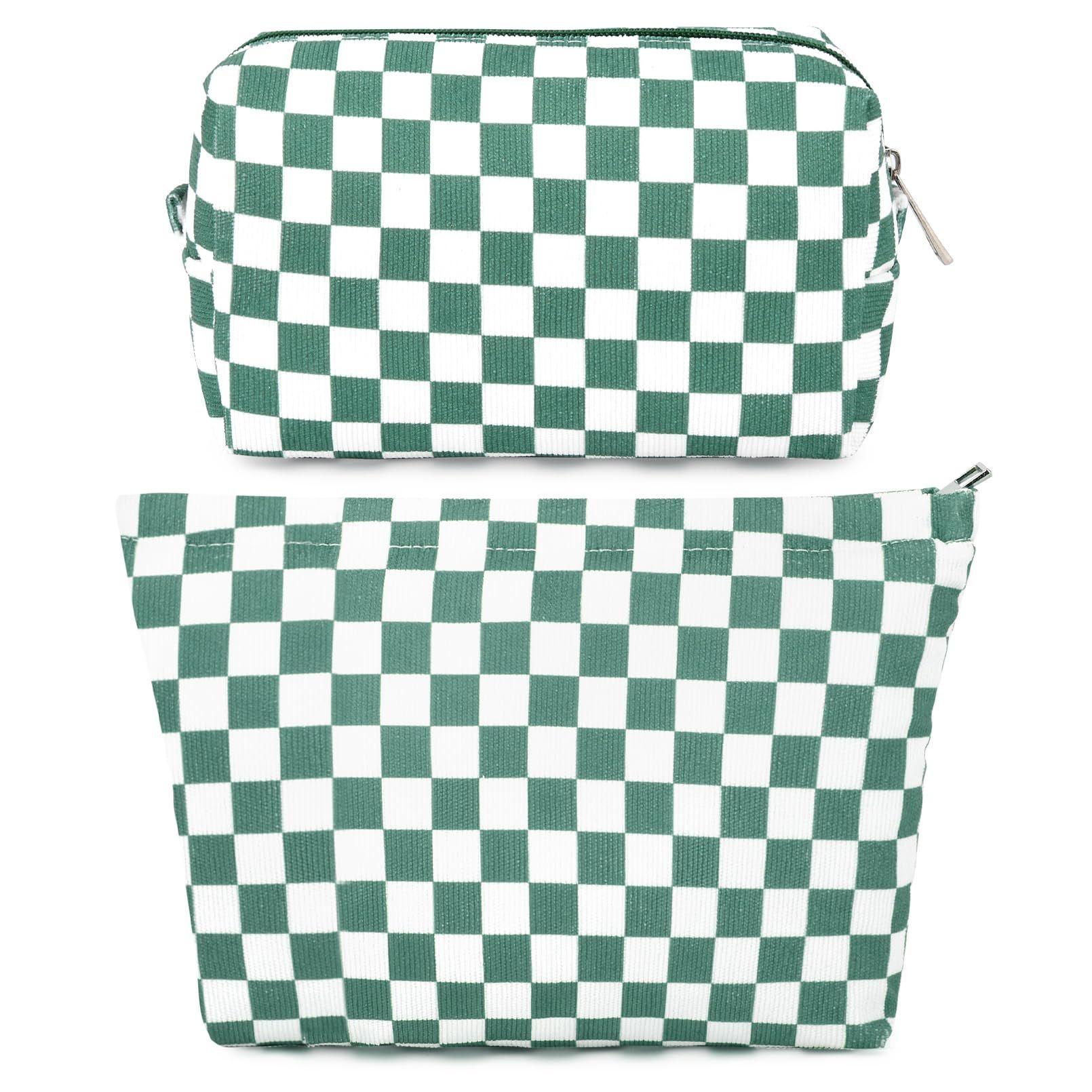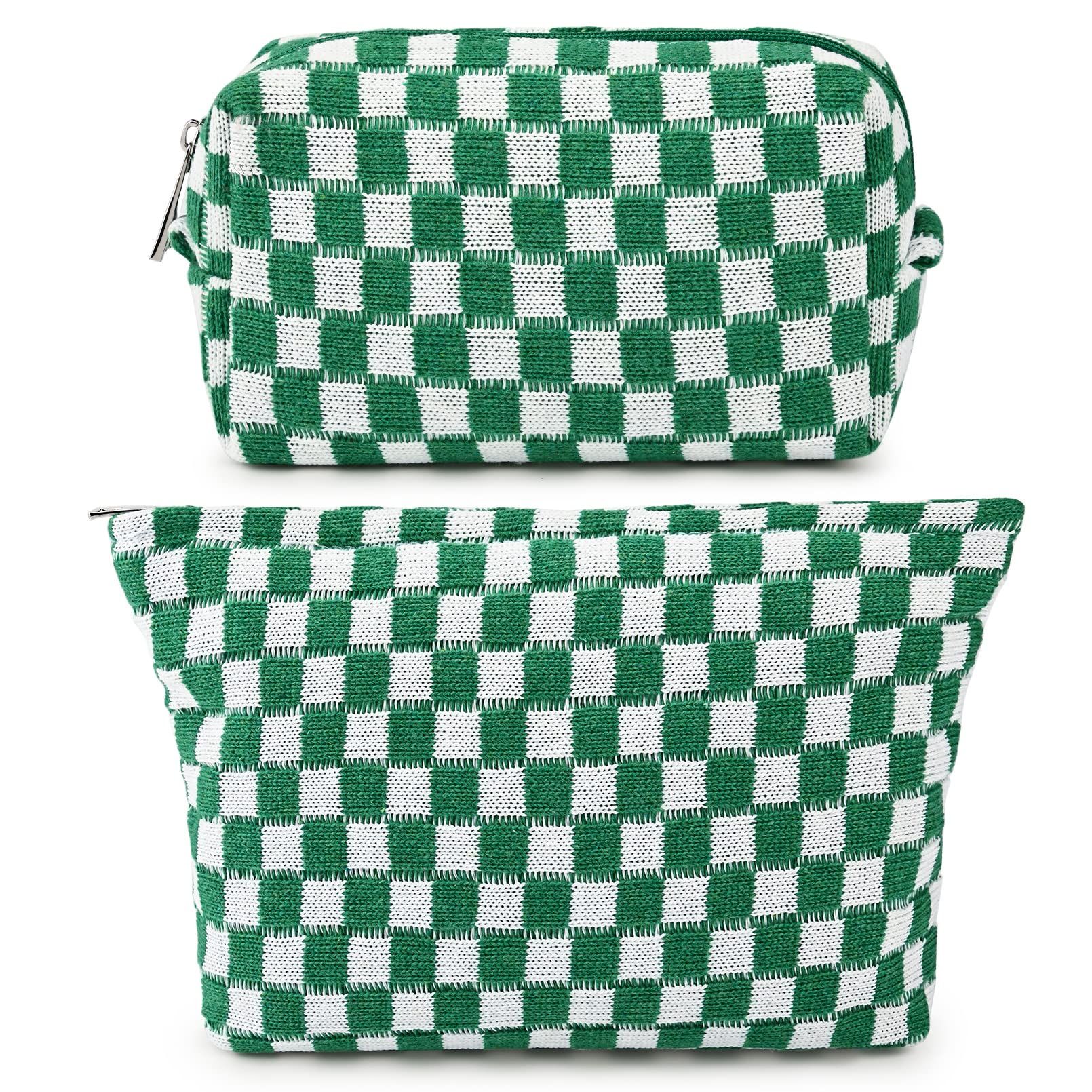SOIDRAM 2 Pieces Makeup Bag Large Checkered Cosmetic Bag Capacity Canvas Mix Travel Toiletry Bag Organizer Cute Makeup Brushes Aesthetic Accessories Storage Bag for Women, Checkered Mix Brown