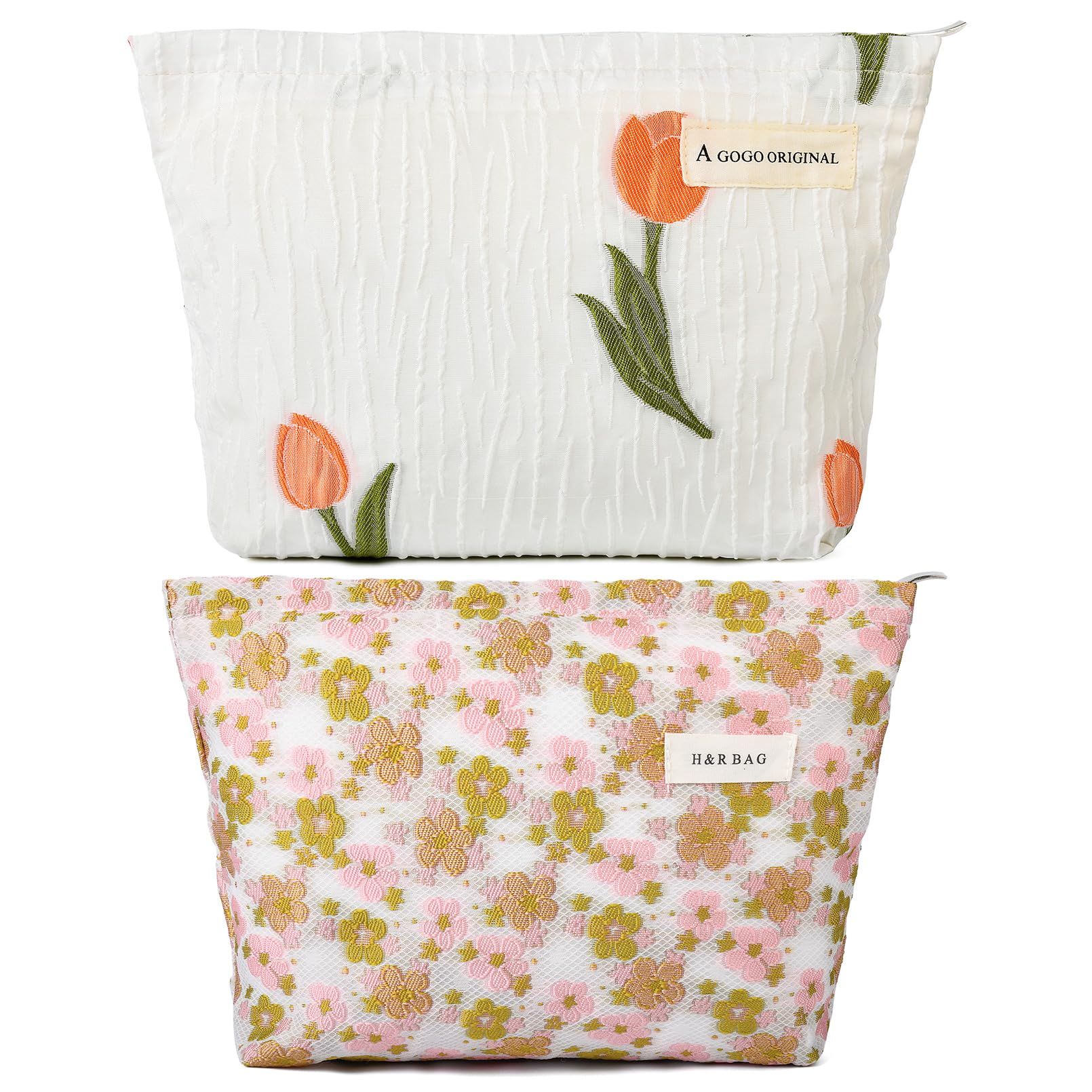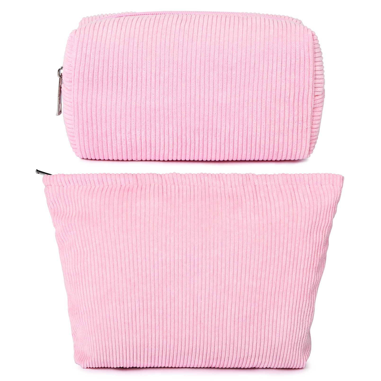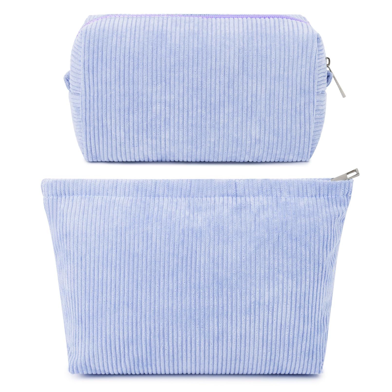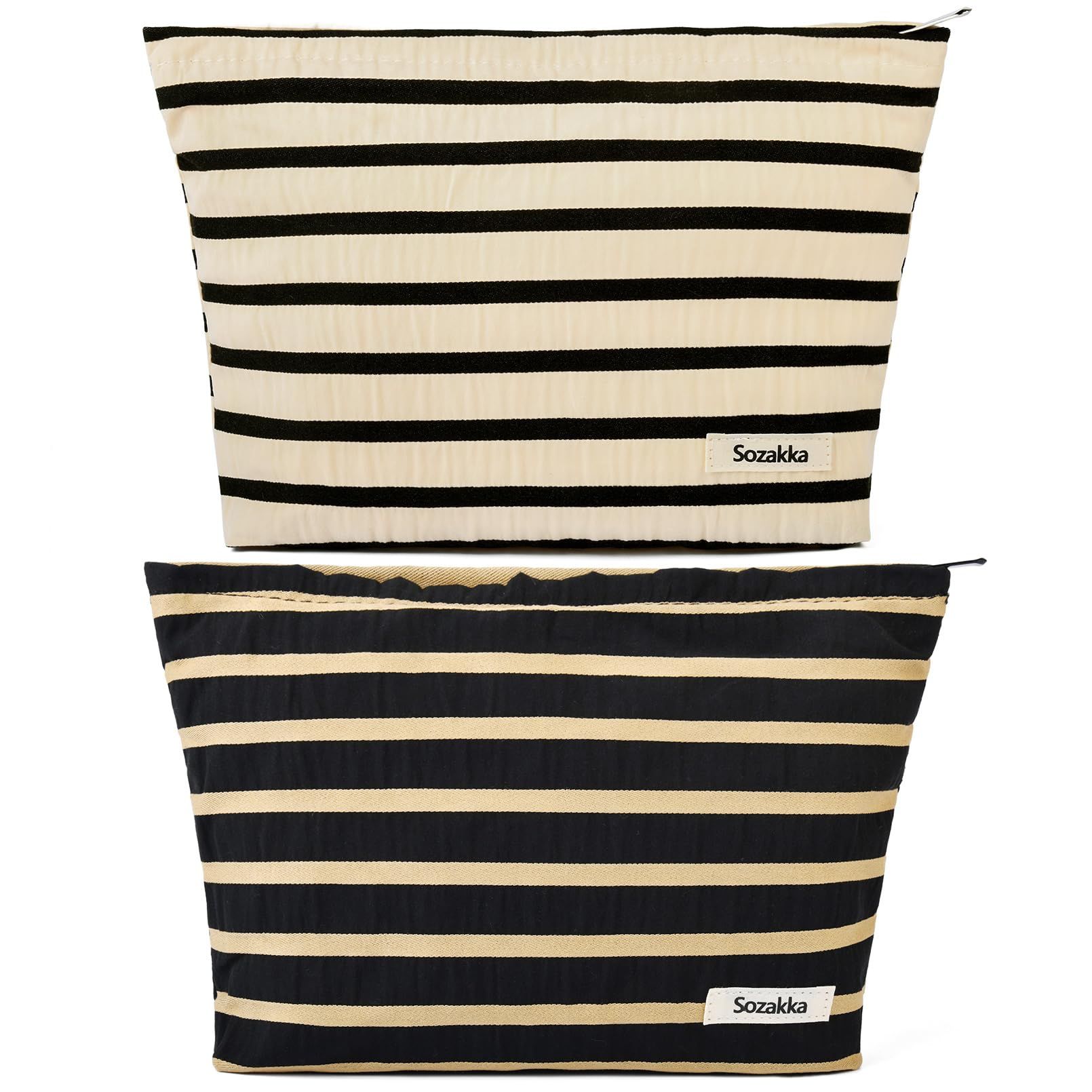 SOIDRAM 2 Pieces Makeup Bag Large Checkered Cosmetic Bag Capacity Canvas Mix Travel Toiletry Bag Organizer Cute Makeup Brushes Aesthetic Accessories Storage Bag for Women, Checkered Mix Brown