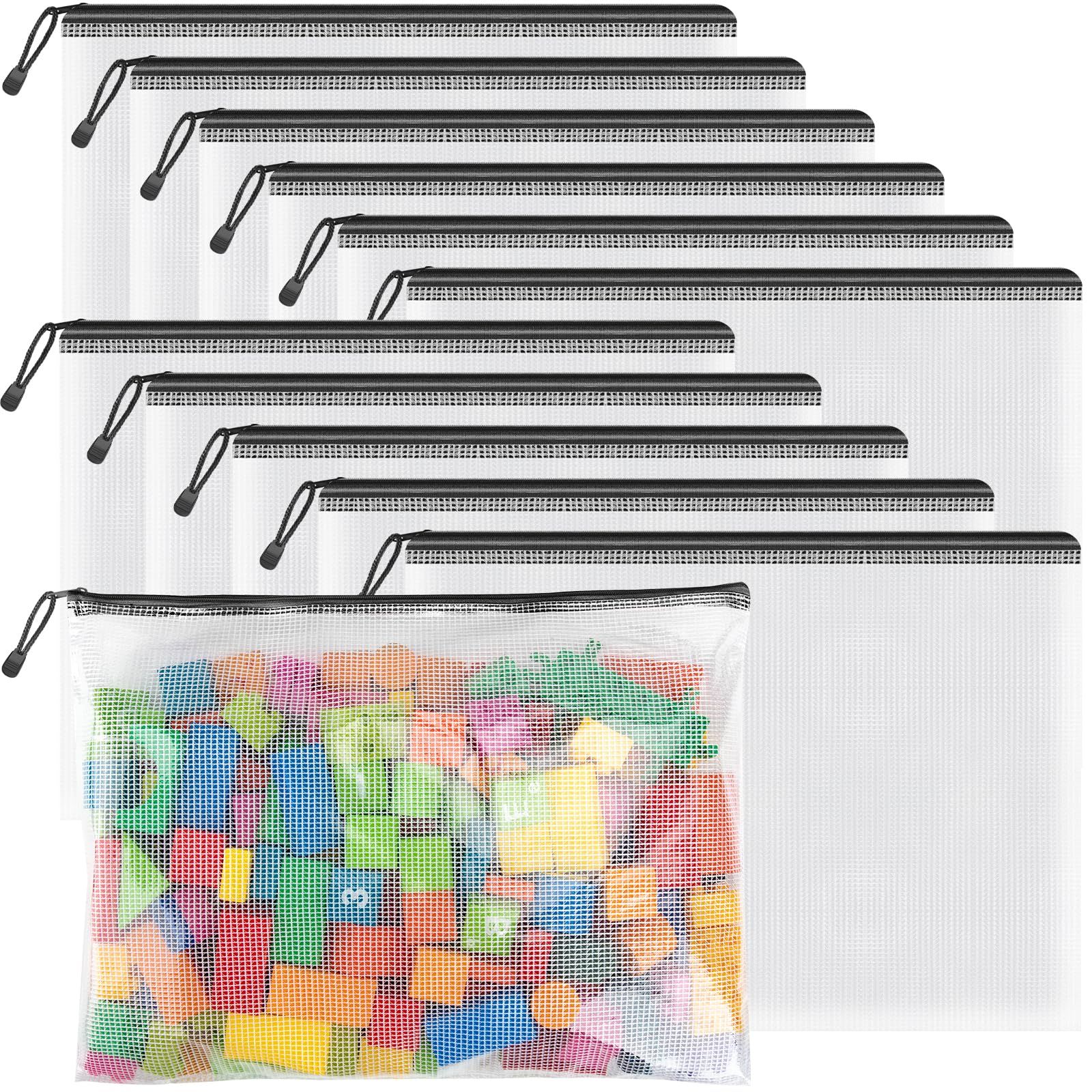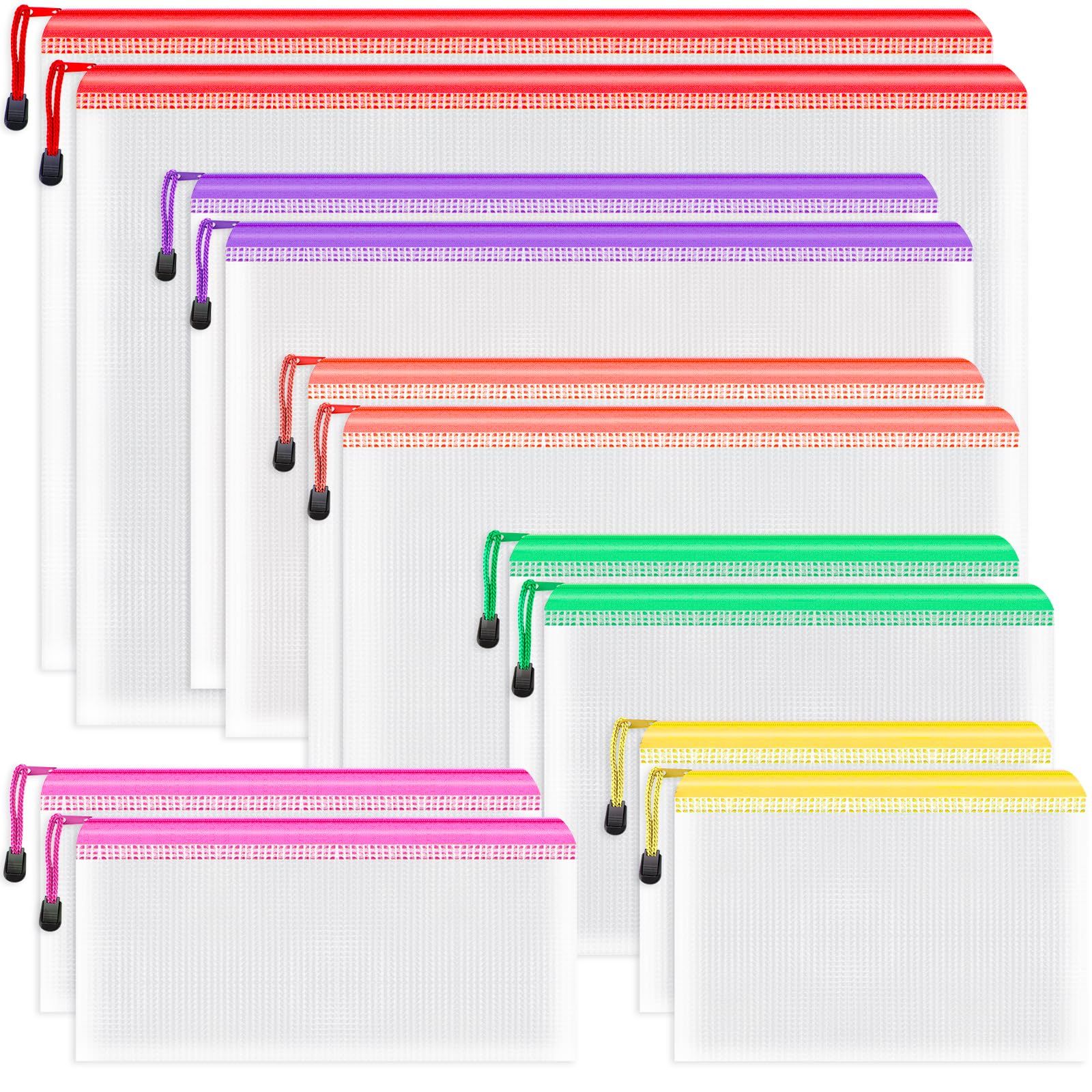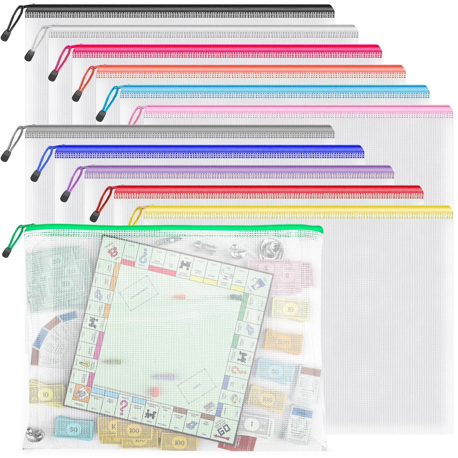 Umriox Zipper Pouch, 16.9x12.4 in (12 Colors, 12 Packs), Extra Large Zipper Bags, Waterproof Bags for Office Supplies, Puzzles, Board Game Storage & Cross Stitch Projects